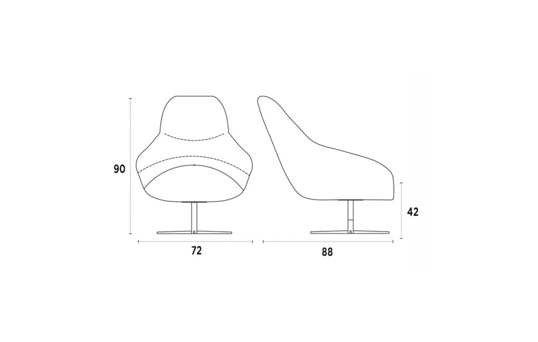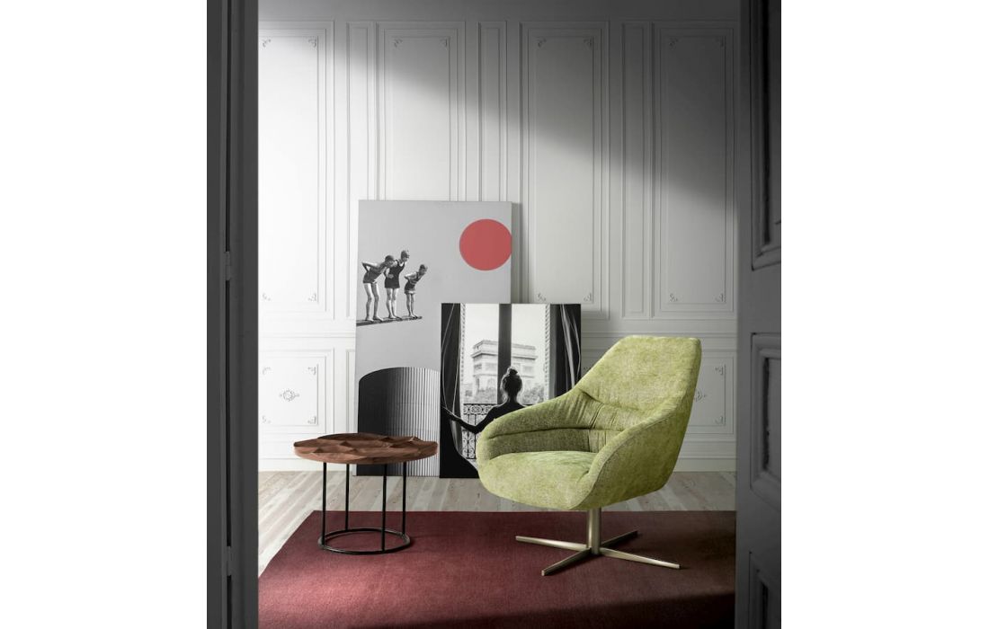Cadeirão giratório em tecido com pés em metal