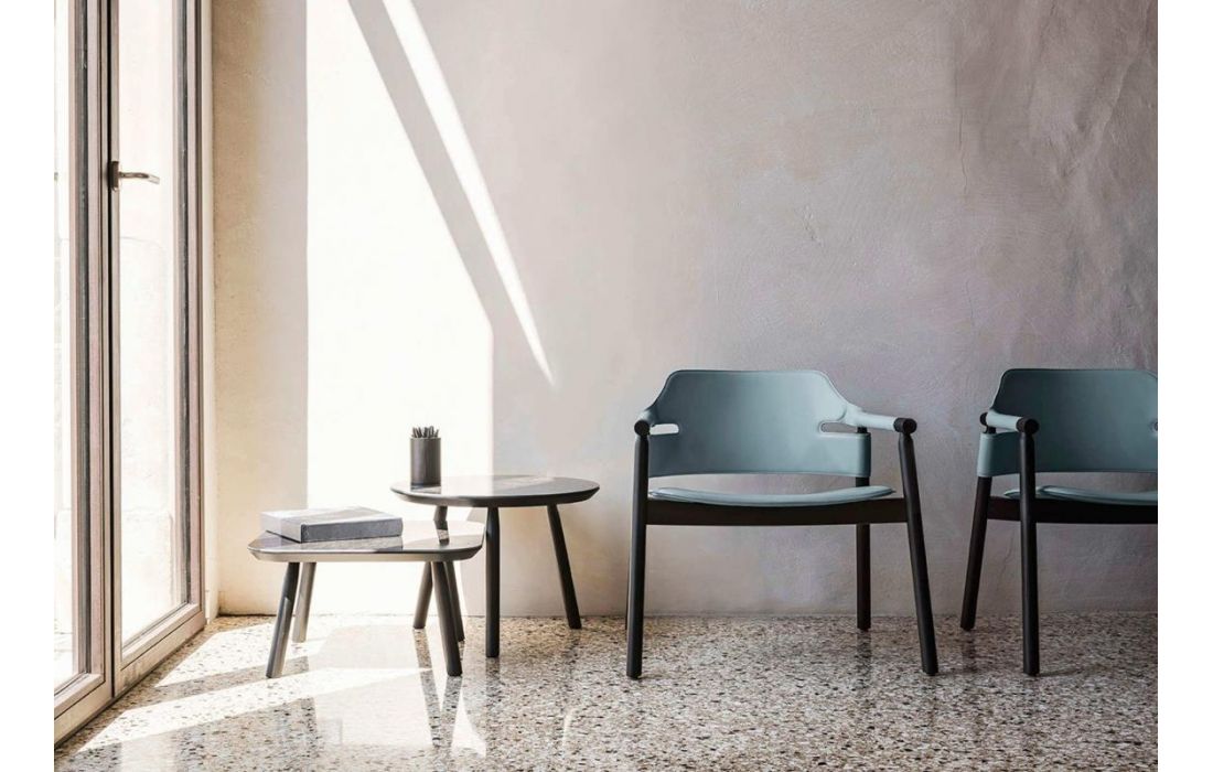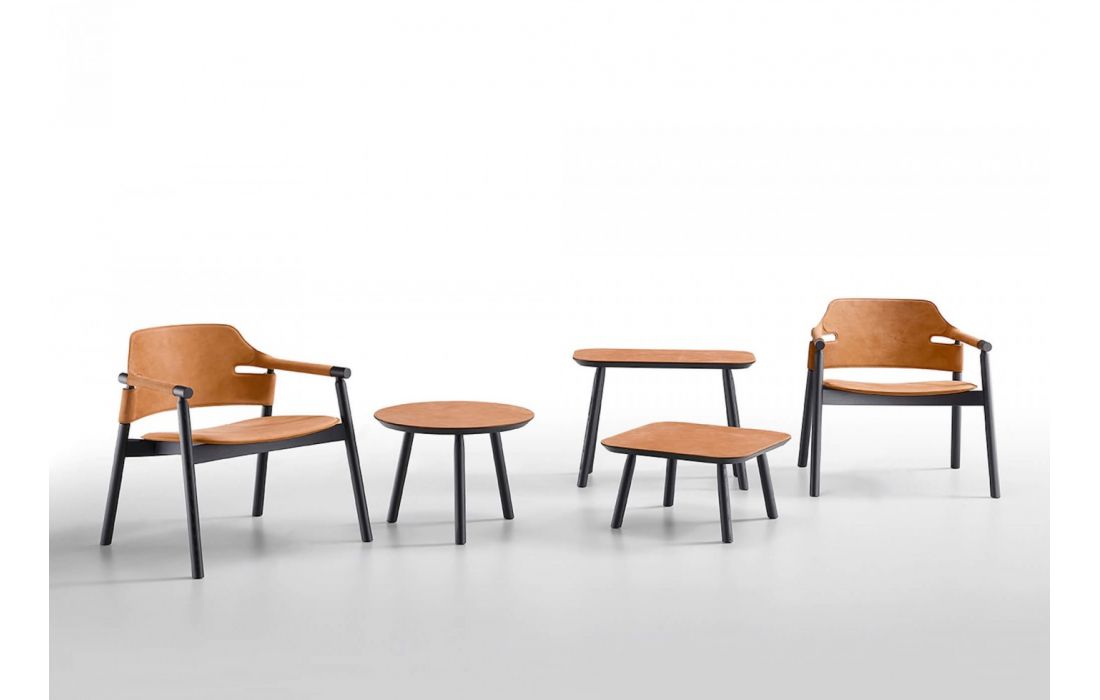 Poltrona com estrutura em madeira de freixo lacado, assento e encosto em peleDestinatário :