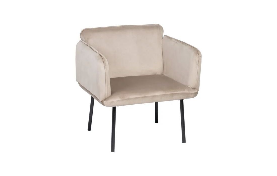Poltrona com pés em metal preto, estofada em tecido 100% poliéster cor bege