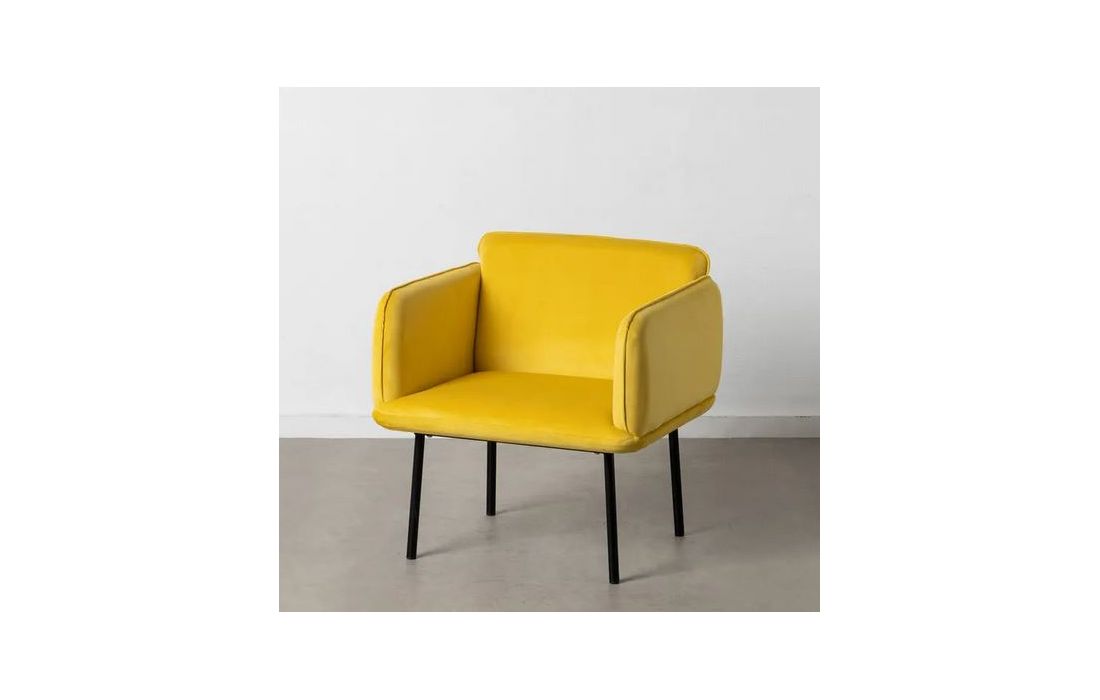 Poltrona com pés em metal preto, estofada em tecido 100% poliéster cor amarelo