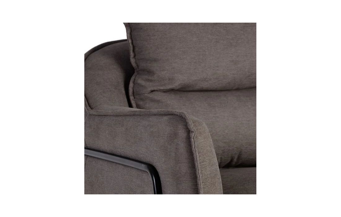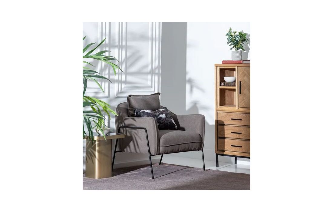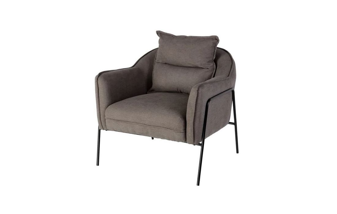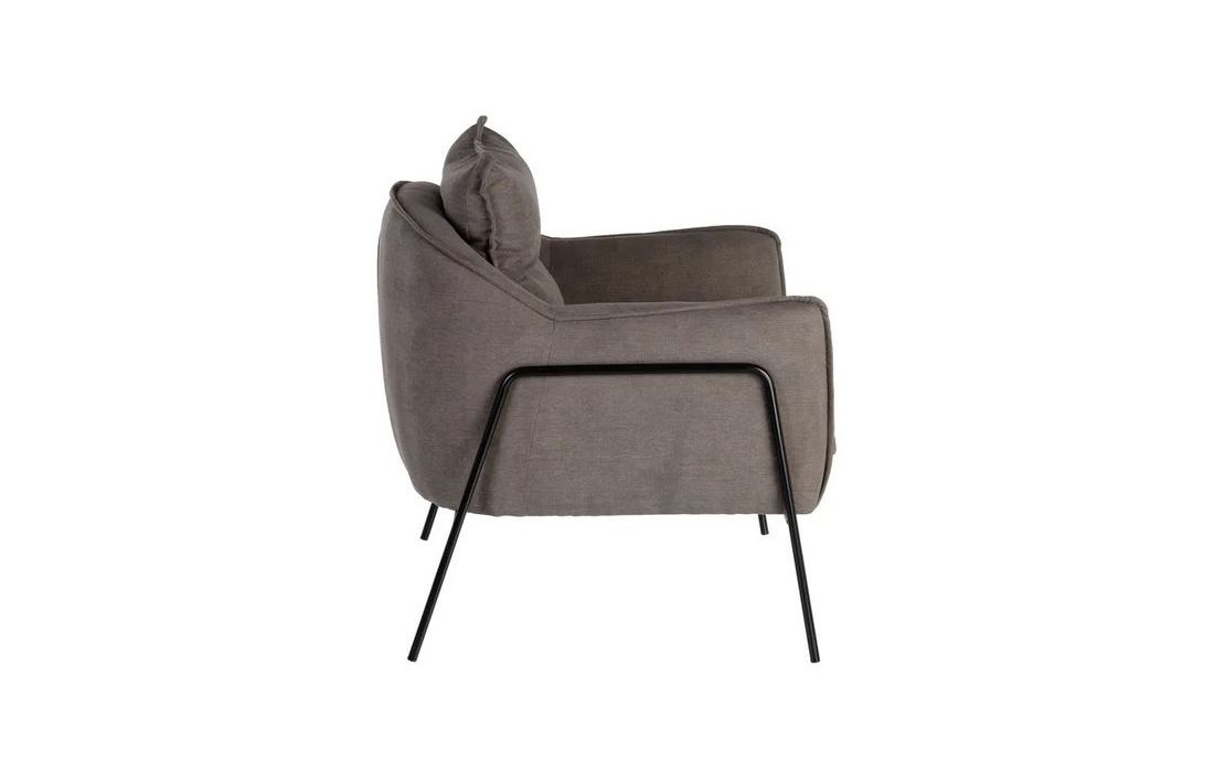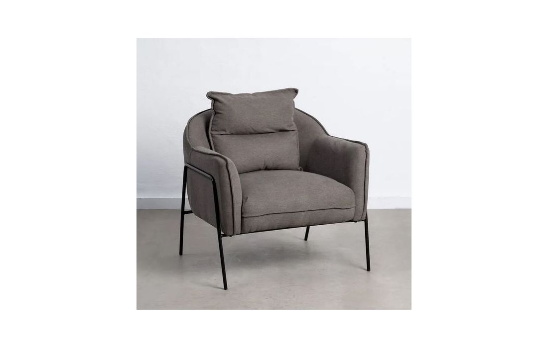 Poltrona com pés em metal preto, estofada em tecido 100% poliéster cor cinza escuro