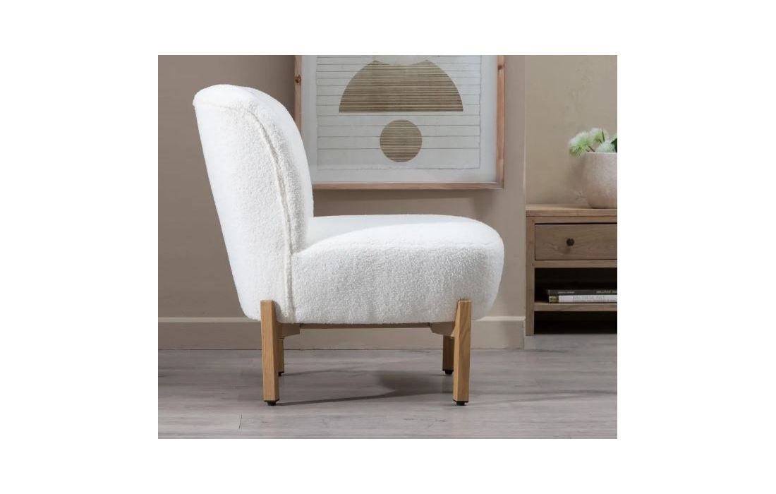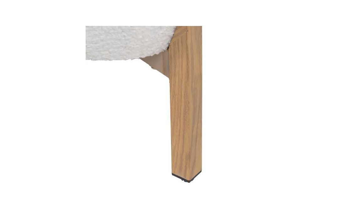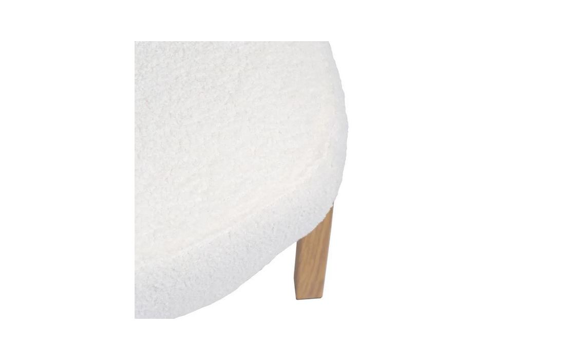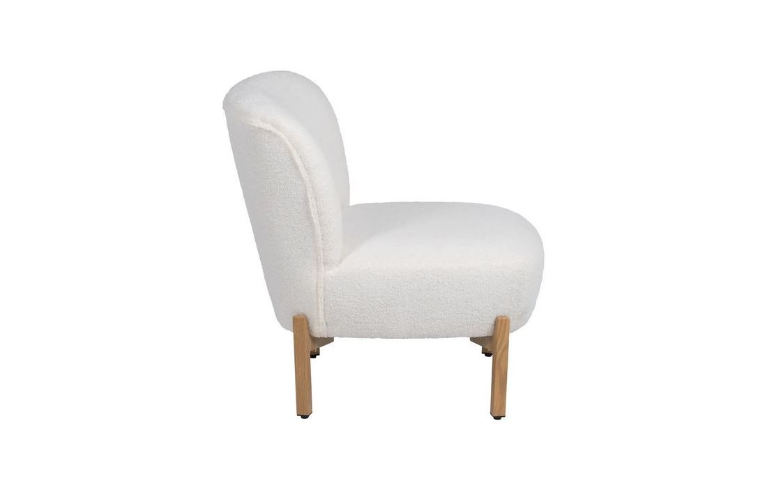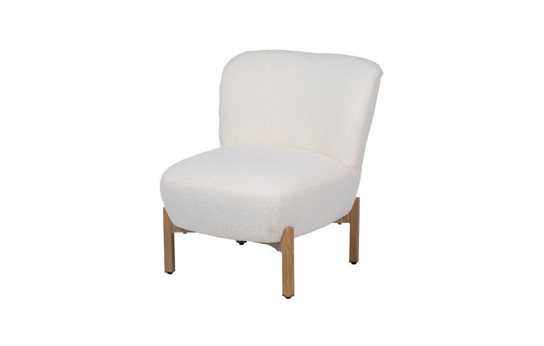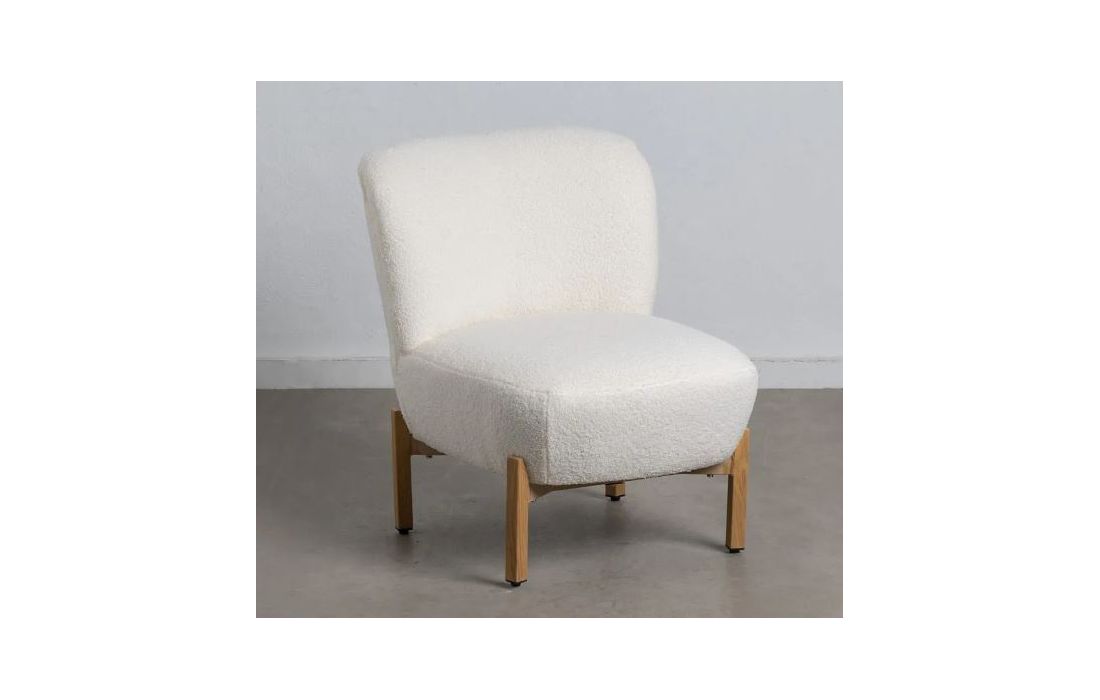 Poltrona com pés em metal a imitar madeira, estofada em tecido cor branca