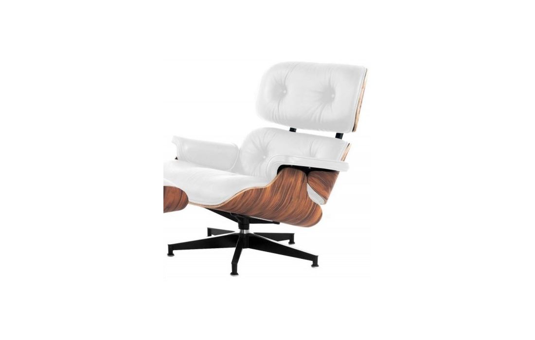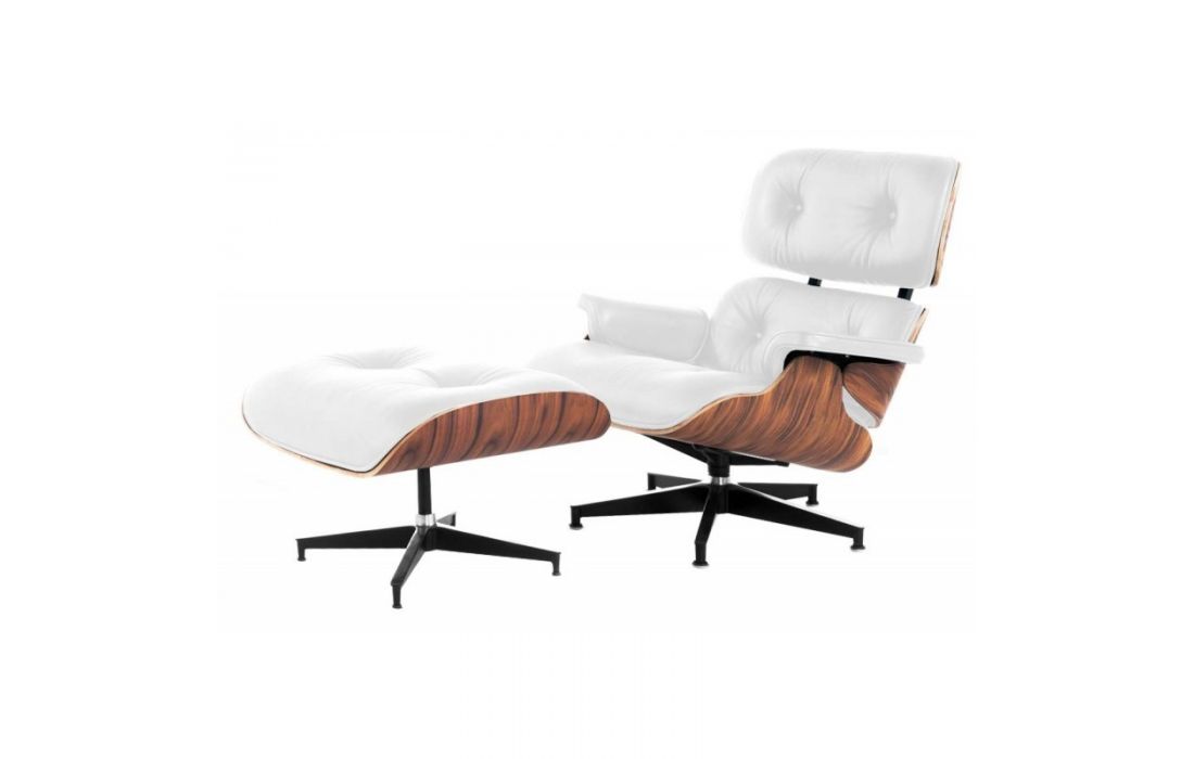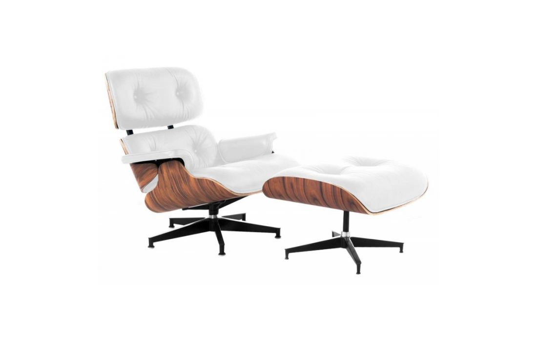 Poltrona com ottoman em pele sintética branca com base de aluminio e estrutura em madeira laminada pau de rosaDestinatário :