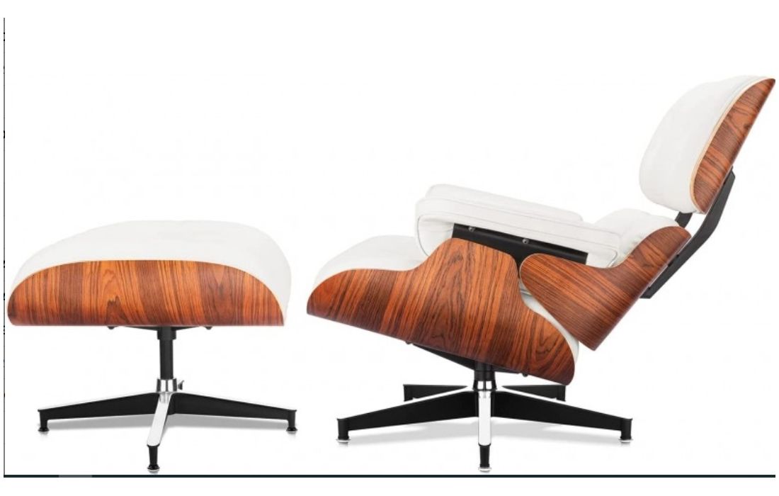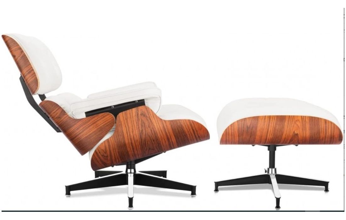 Poltrona com ottoman em pele sintética branca com base de aluminio e estrutura em madeira laminada de jacarandaDestinatário :