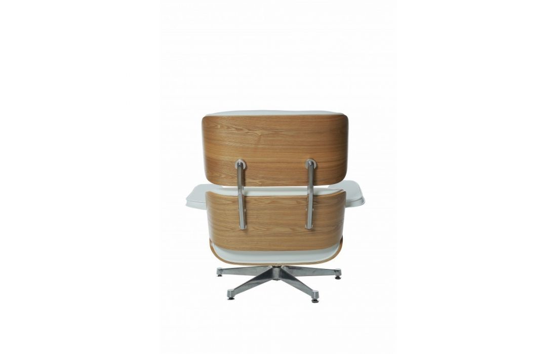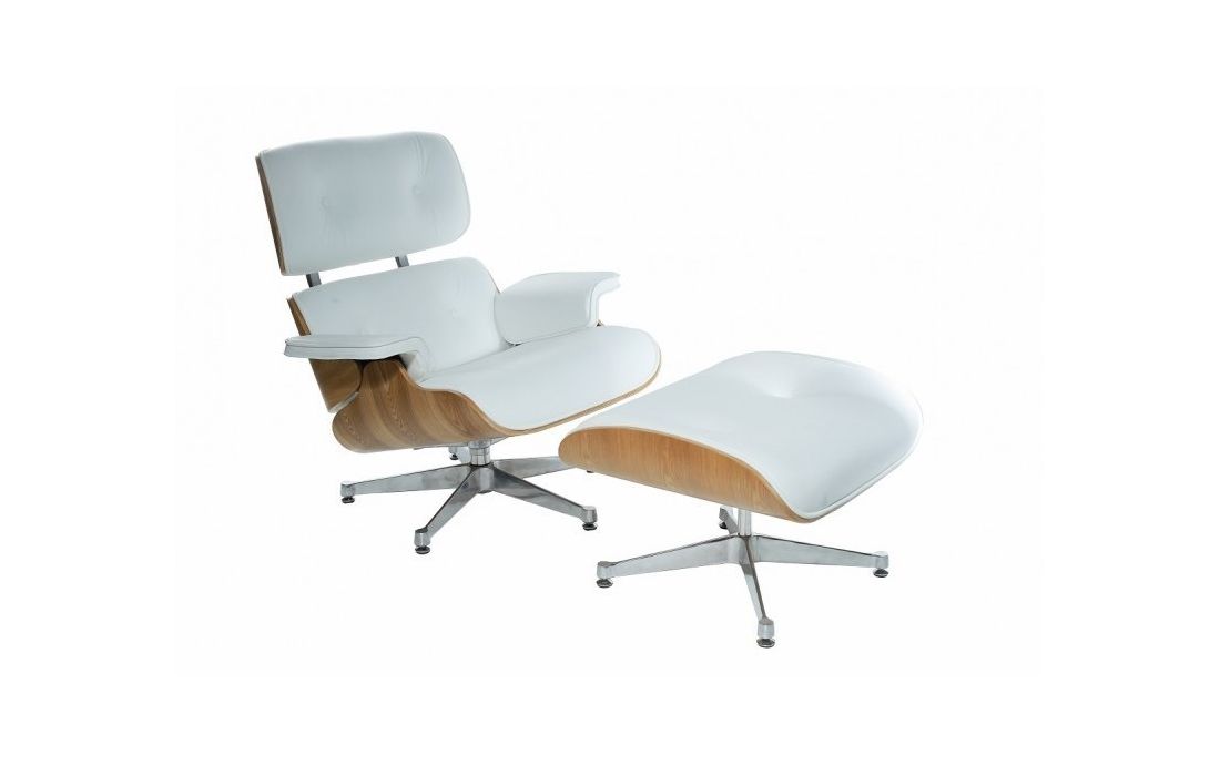 Poltrona com ottoman em pele branca com base de aluminio e estrutura em madeira laminada de freixoDestinatário :