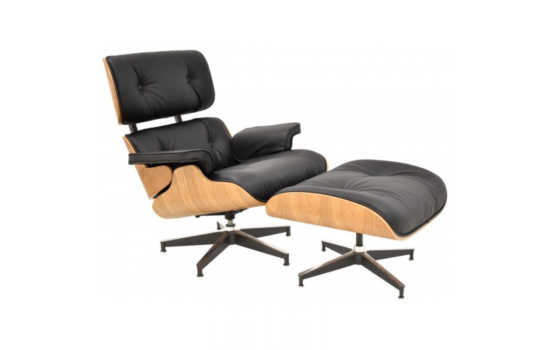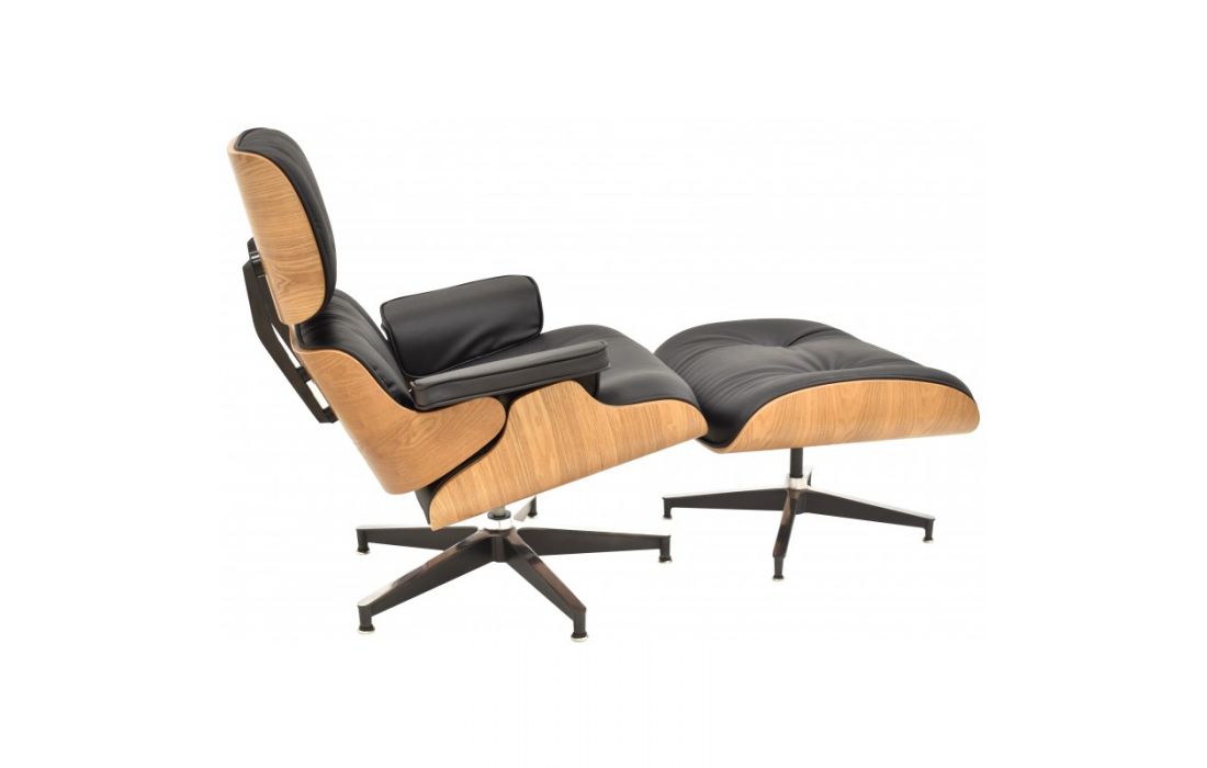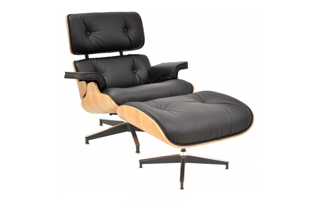Poltrona com ottoman em pele preta com base de aluminio e estrutura em madeira laminada de freixoDestinatário :