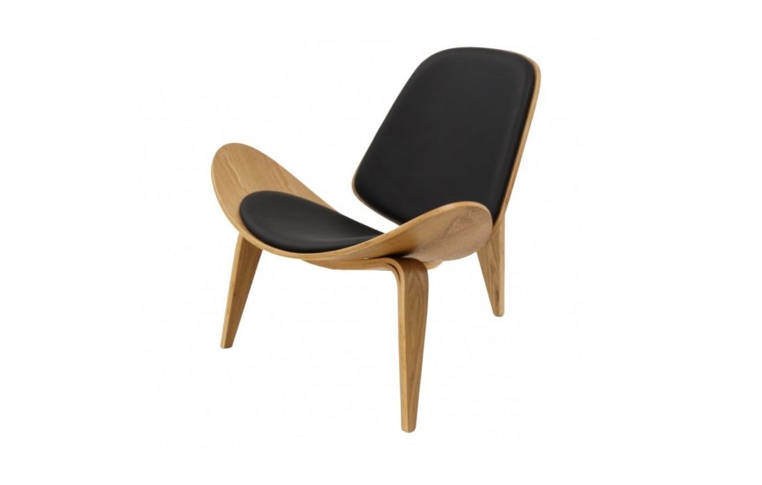 Poltrona em madeira laminada de freixo com estofo em pele sintética pretaDestinatário :