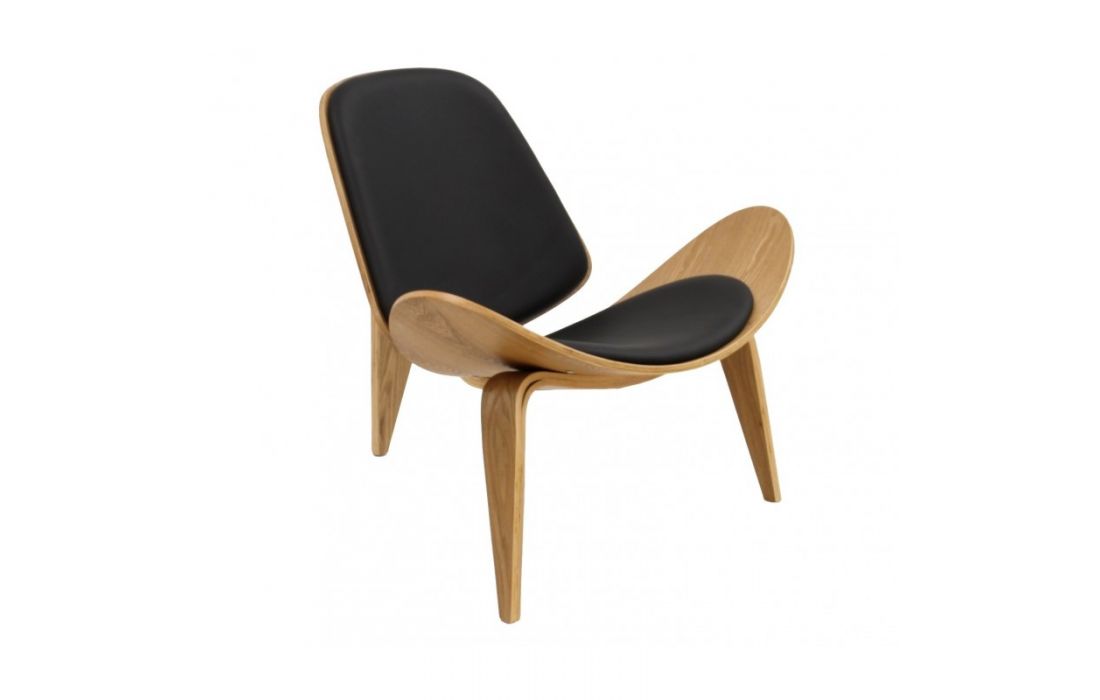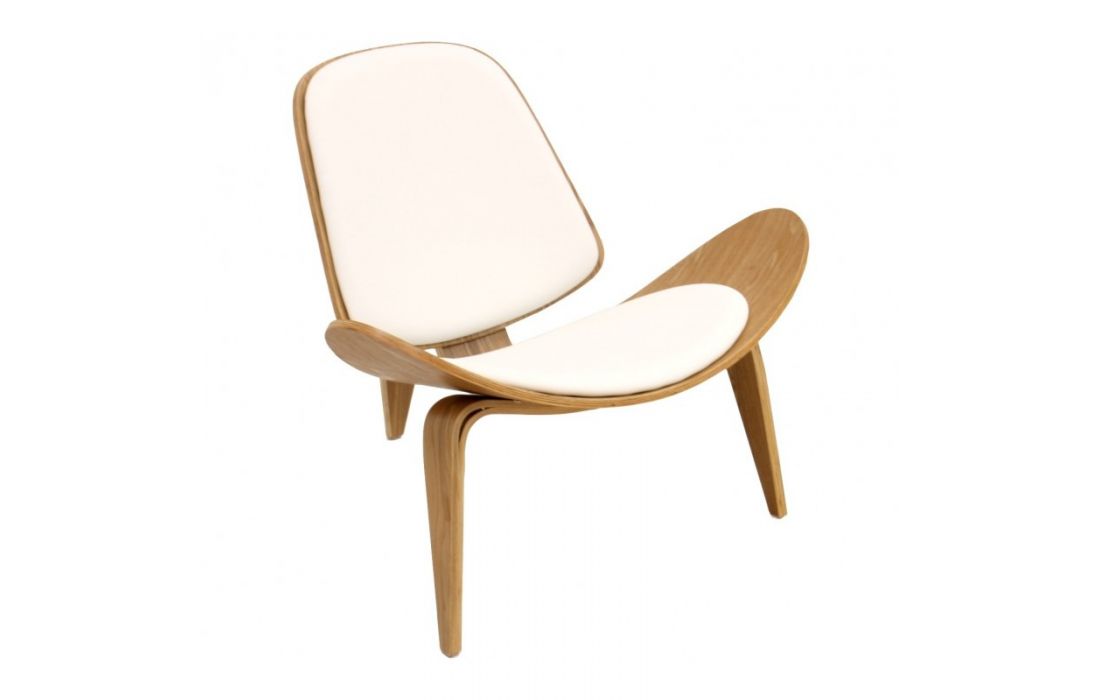 Poltrona em madeira laminada de freixo com estofo em pele sintética brancaDestinatário :