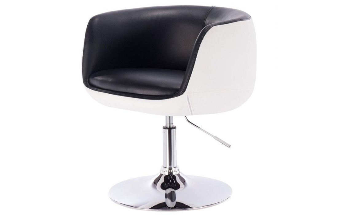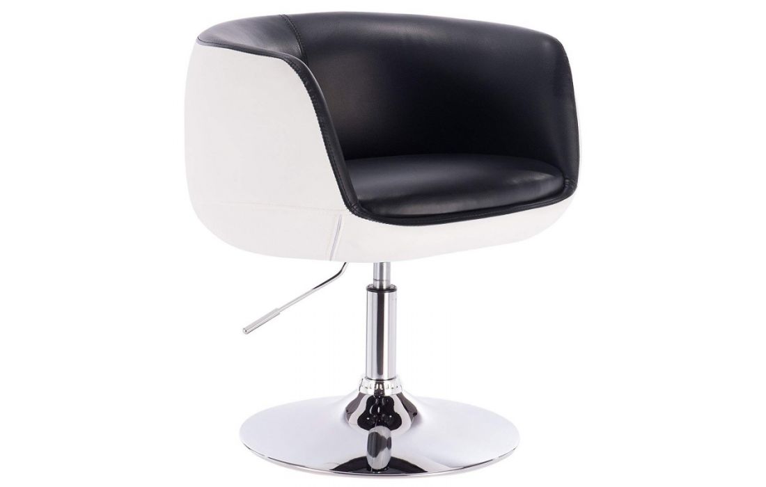 Poltrona giratória em pele sintética branca e preta , com pé em metal cromado com mecanismo elevatorioDestinatário :