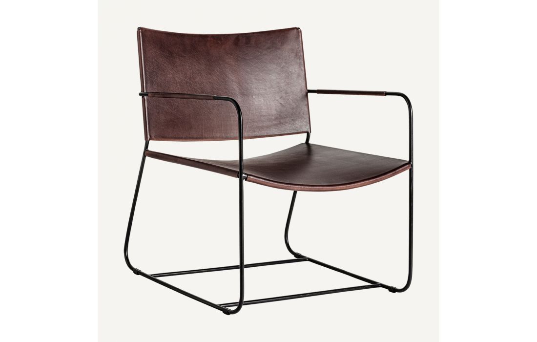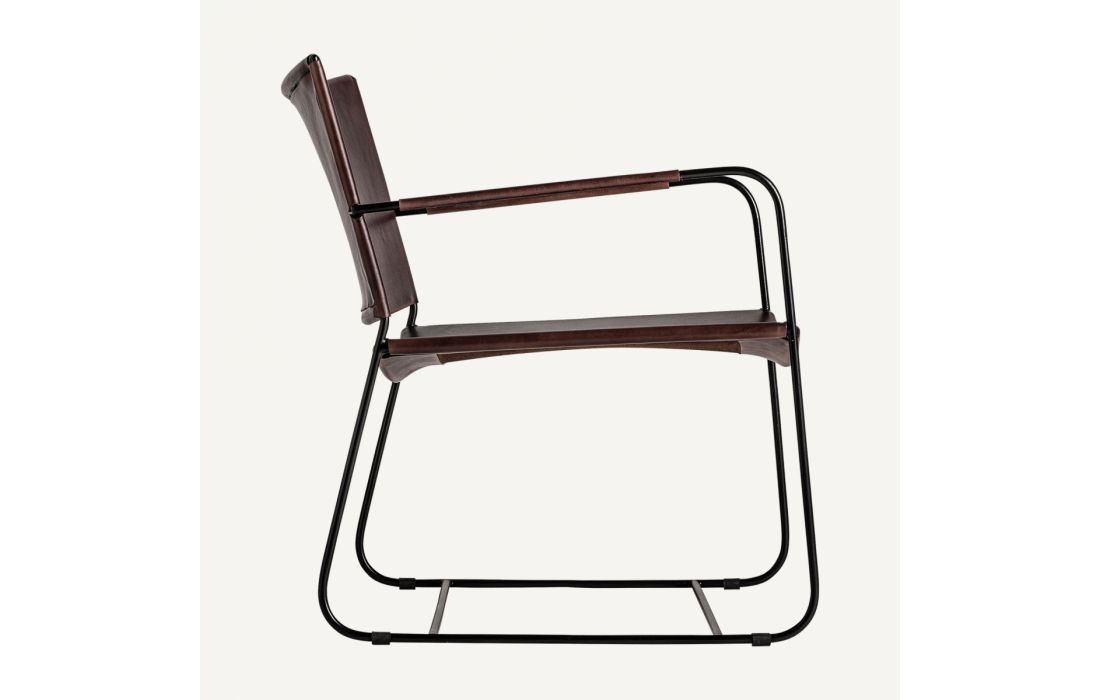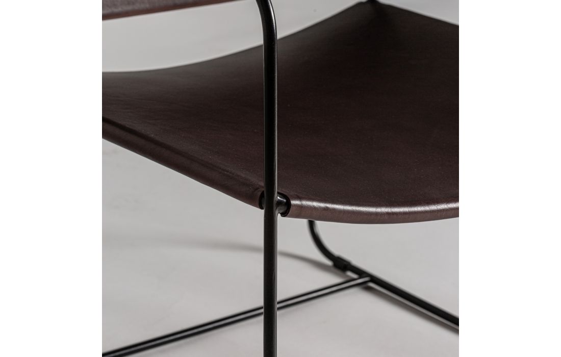 POLTRONA ZELL, COR MARROM, ESTILO CONTEMPORÂNEO. FEITO DE FERRO, COMBINADO COM COURO.