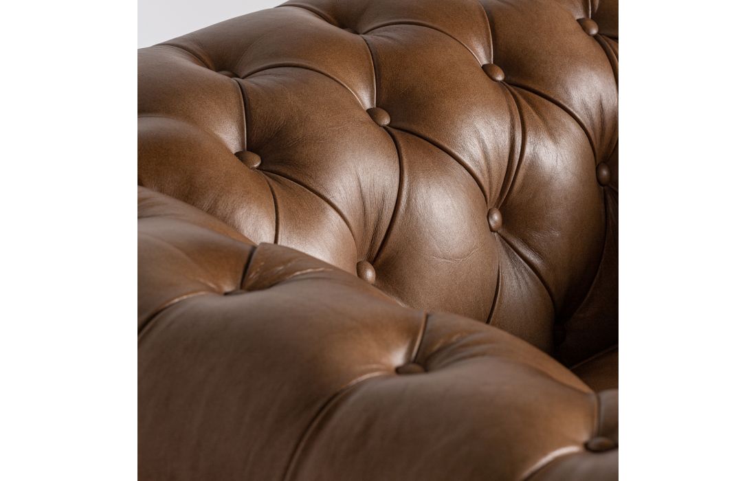 POLTRONA ELKINS ABOTOADO, COR MARROM, ESTILO VINTAGE. FEITA EM MADEIRA DE ACÁCIA.