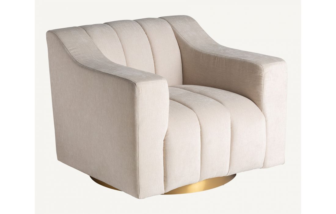 POLTRONA SCUOL, COR BRANCO/DOURADO, ESTILO ART DECO. FEITA EM MADEIRA DE PINHO, COMBINADA COM AÇO.
