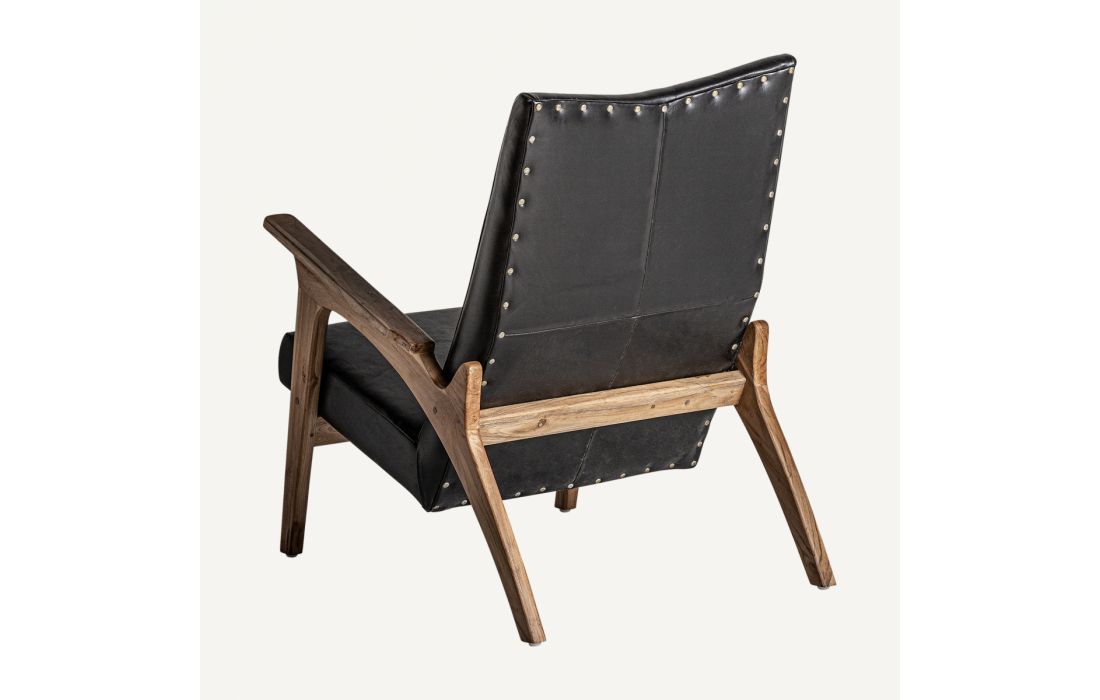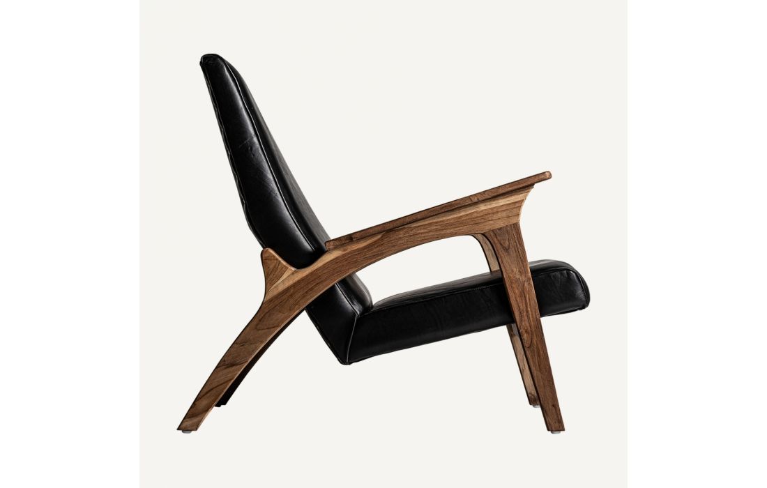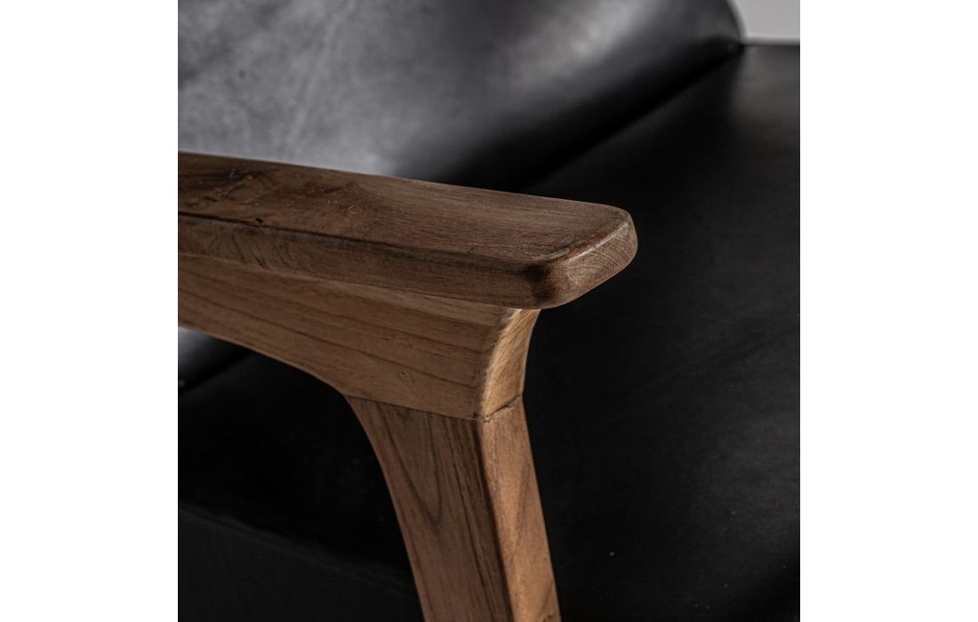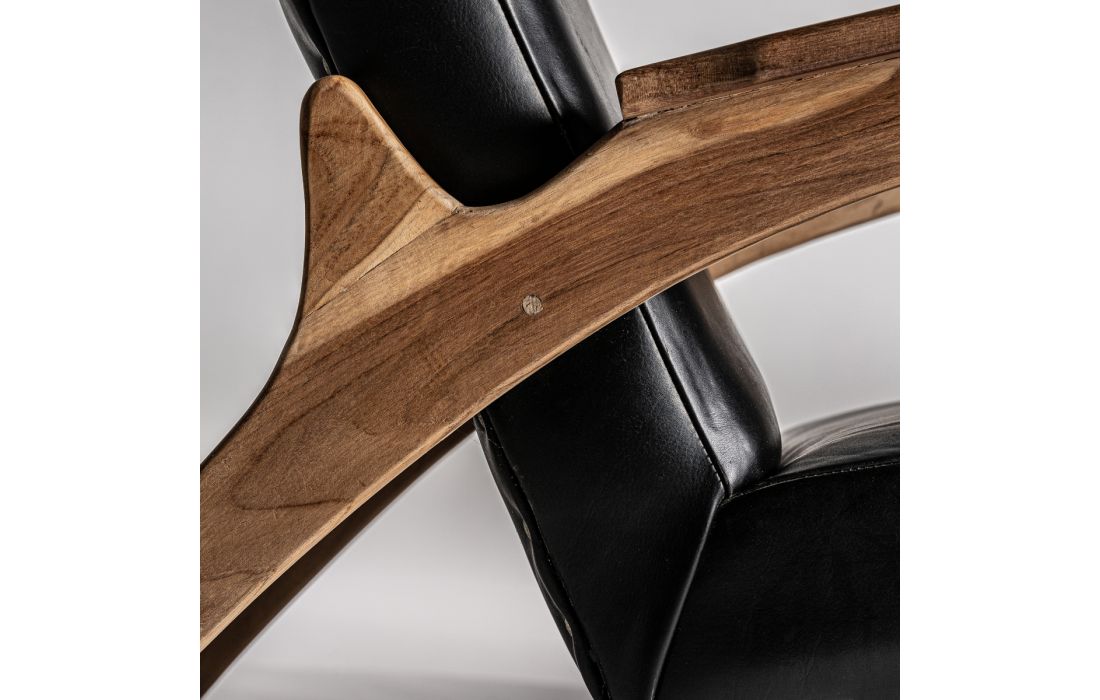 POLTRONA CRANS, PRETO/COR NATURAL, ESTILO VINTAGE. FEITA EM MADEIRA TECA, COMBINADA COM COURO.