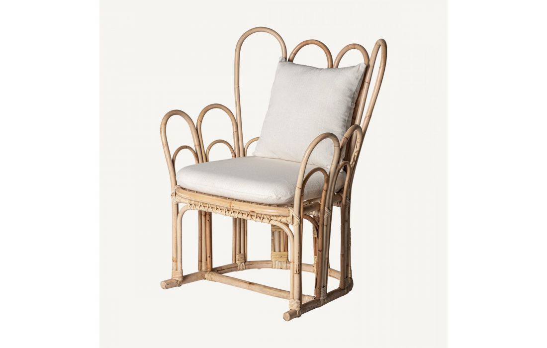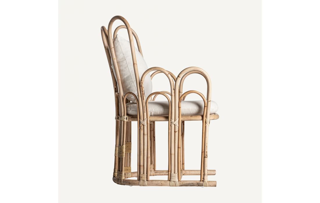 POLTRONA LUBAN, COR NATURAL, ESTILO CONTEMPORÂNEO. FEITA EM MADEIRA TECA, COMBINADA COM RATTAN.