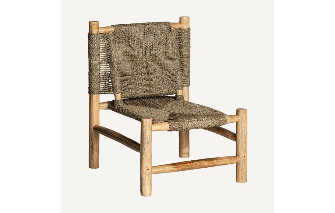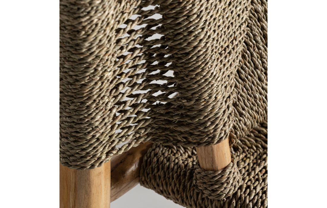 POLTRONA MANHULA, COR NATURAL, ESTILO COLONIAL. FEITA EM RÁFIA, COMBINADA COM MADEIRA DE TECA.