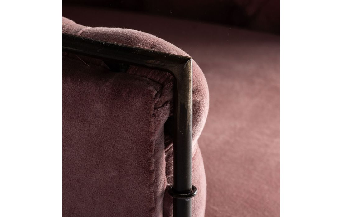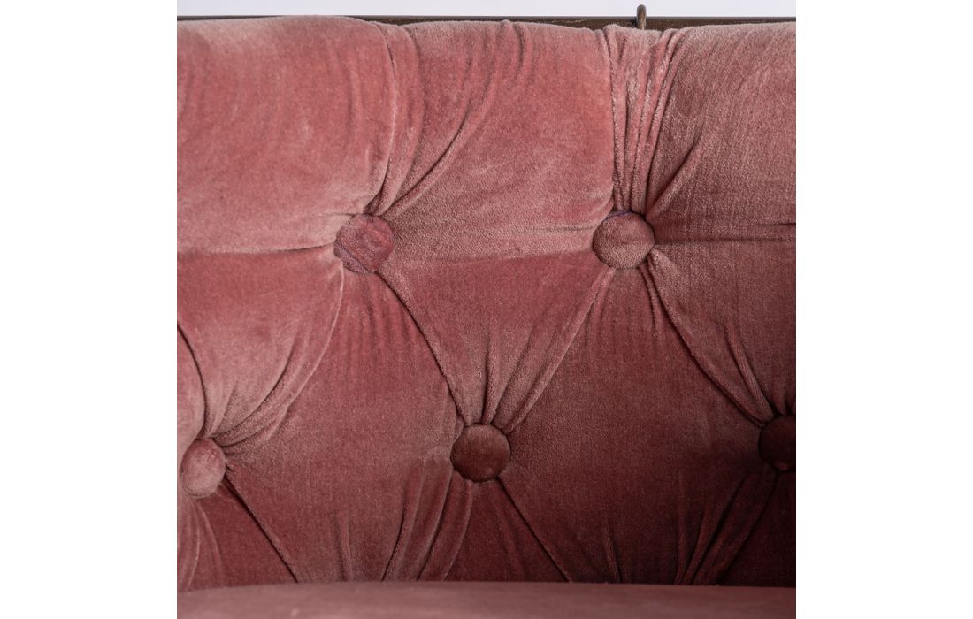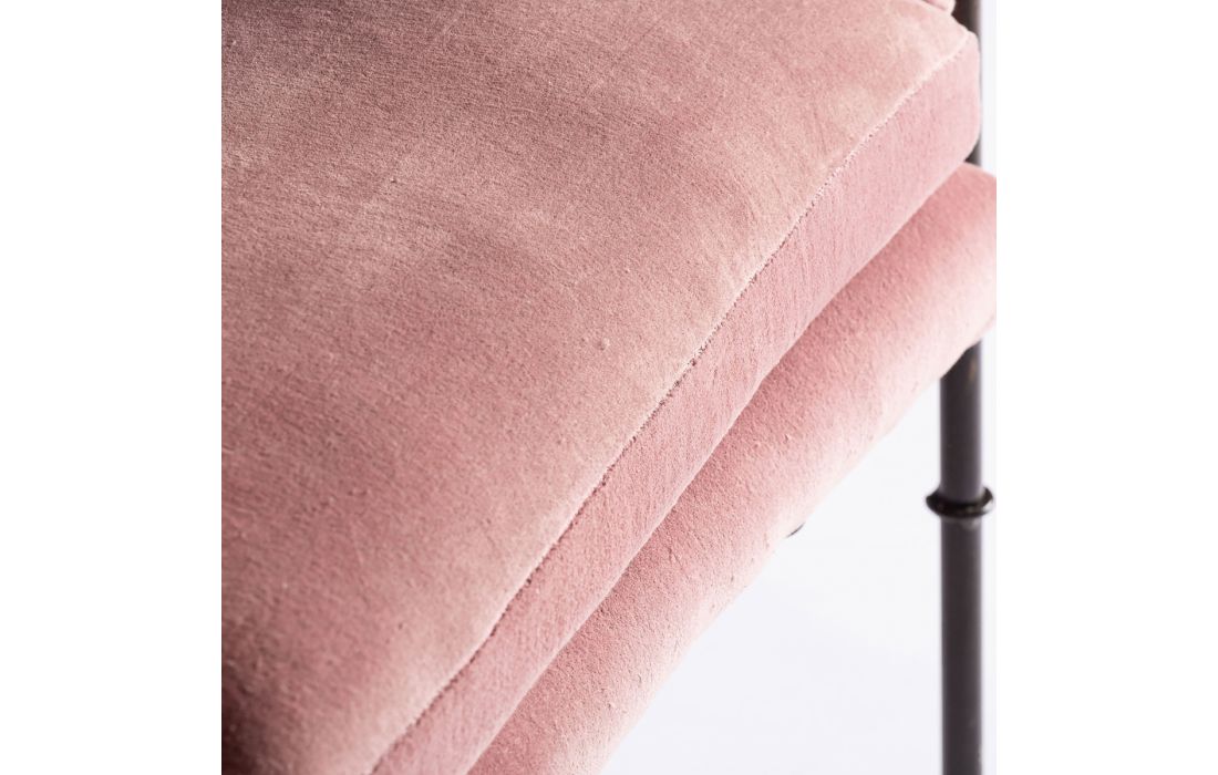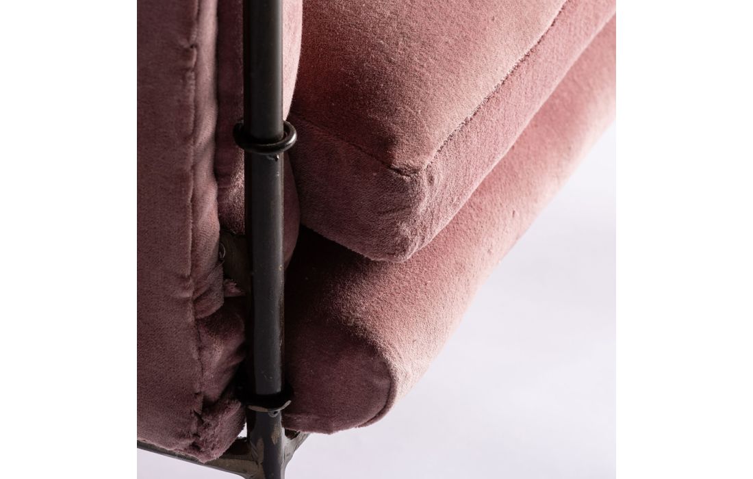 POLTRONA ABOTOADA TARDIANO, COR ROSA, ESTILO SHABBY CHIC. FEITA EM FERRO, COMBINADA COM VELUDO E ALGODÃO.