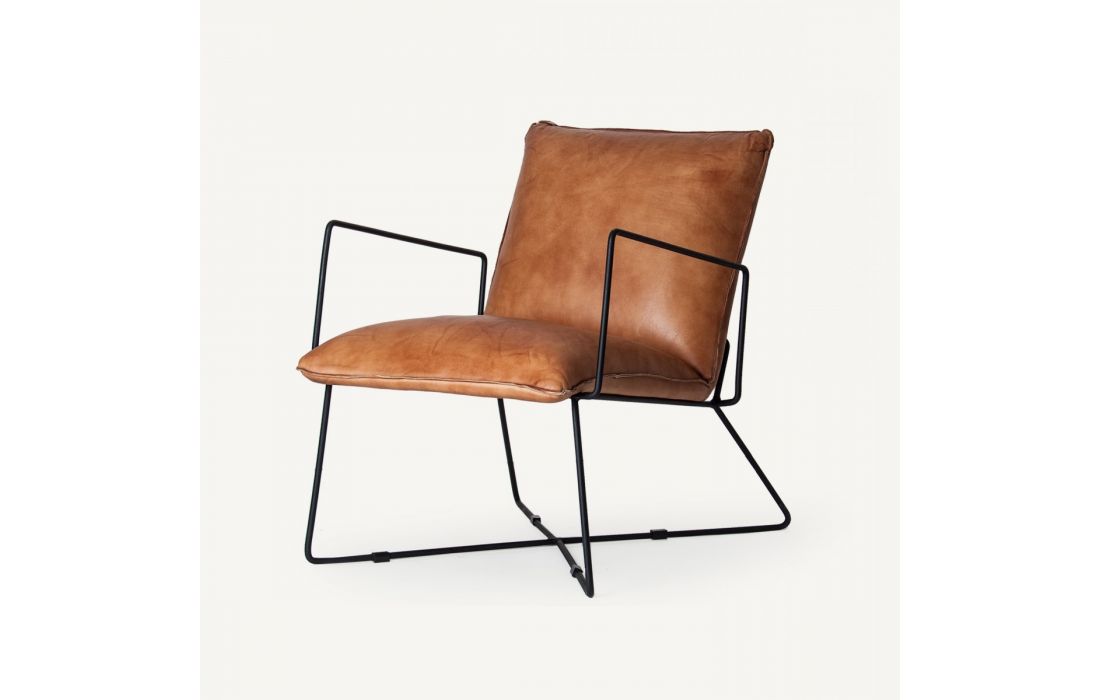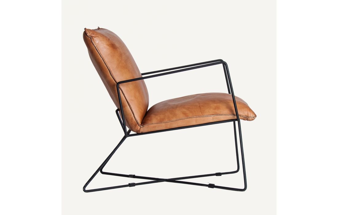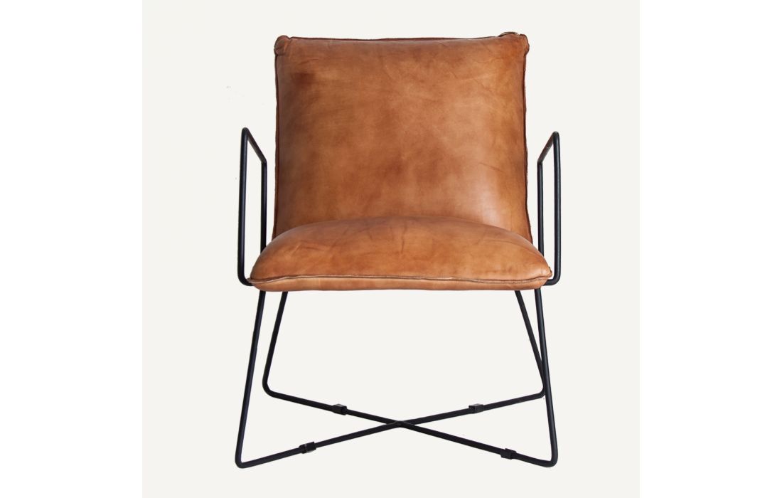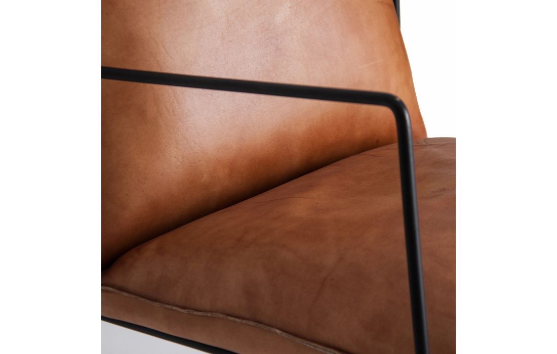 CADEIRÃO SENEY, COR MARROM, ESTILO VINTAGE. FEITO DE COURO, COMBINADO COM FERRO