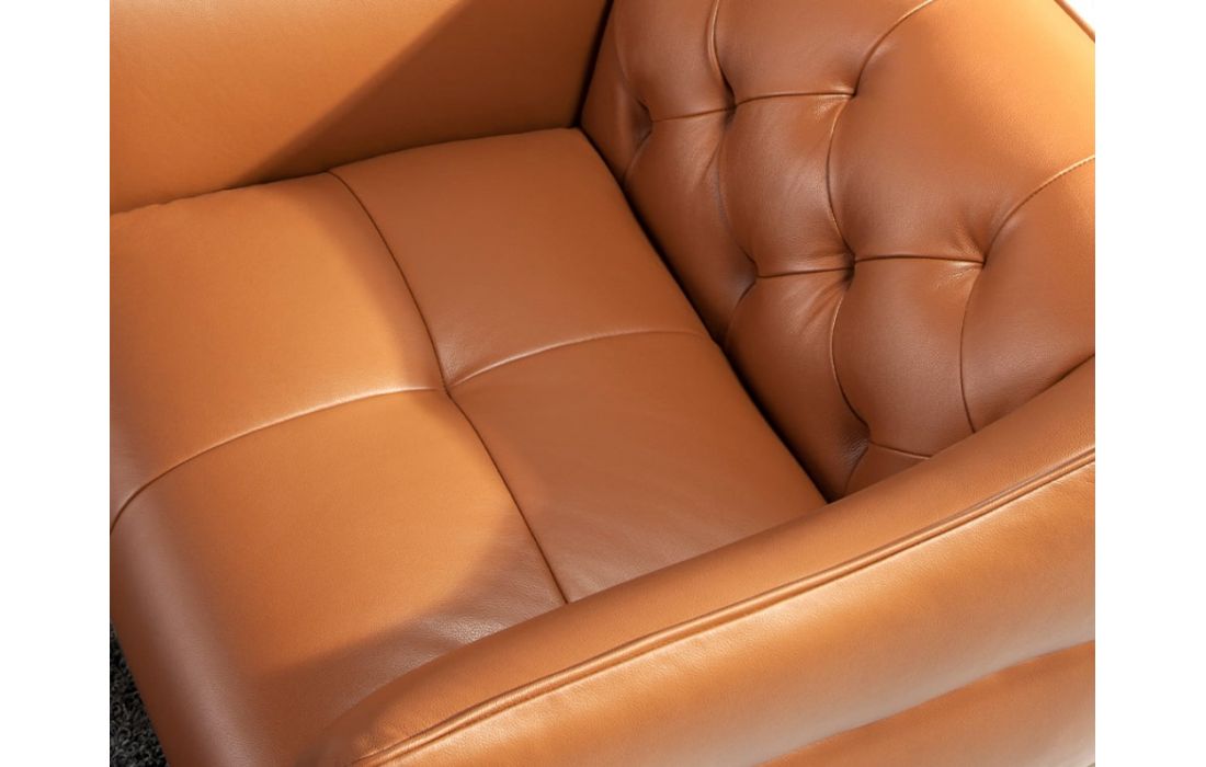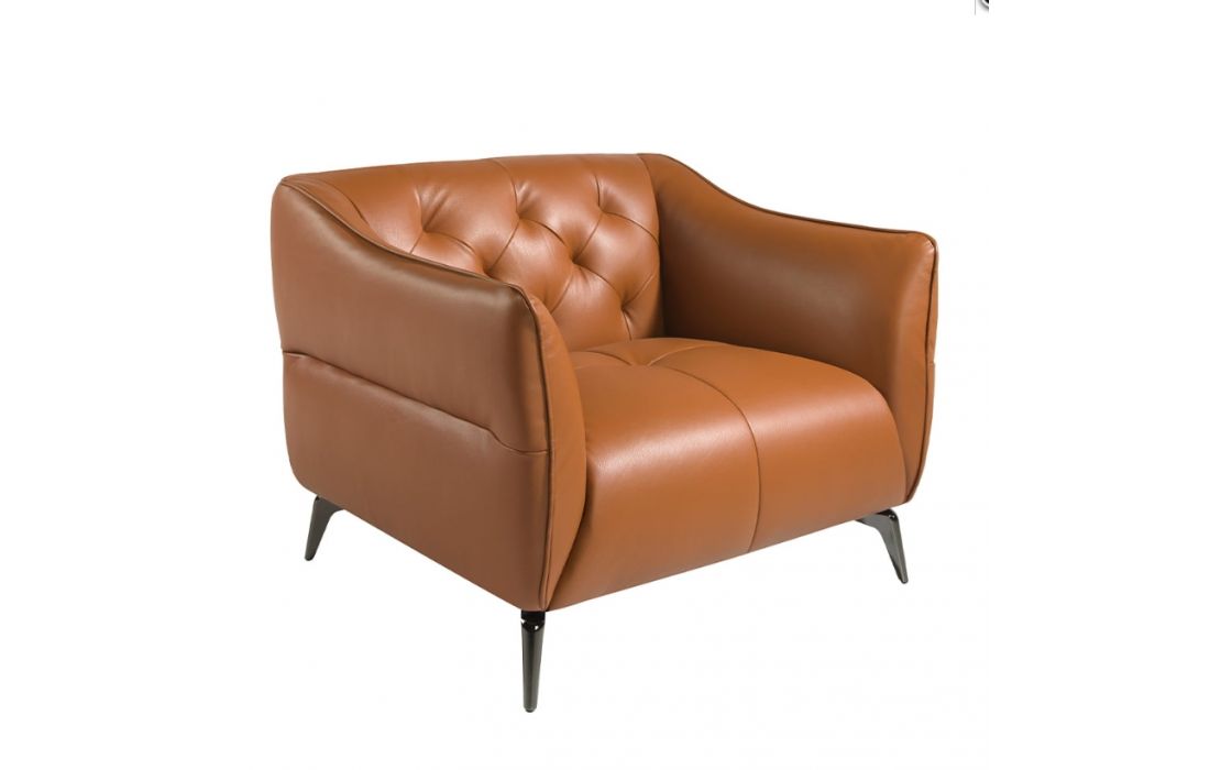 Especificações do Produto Poltrona estofado em couro com encosto capitoné. Estrutura da perna de Pato em aço sólido escurecido. Não fazemos qualquer alteração ao produto Manutenção e Limpeza Limpar com um pano umedecido em solução de sabão neutro e seque imediatamente com um pano seco.