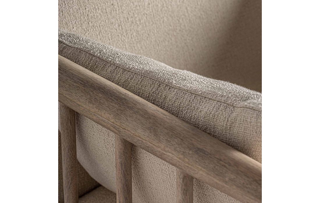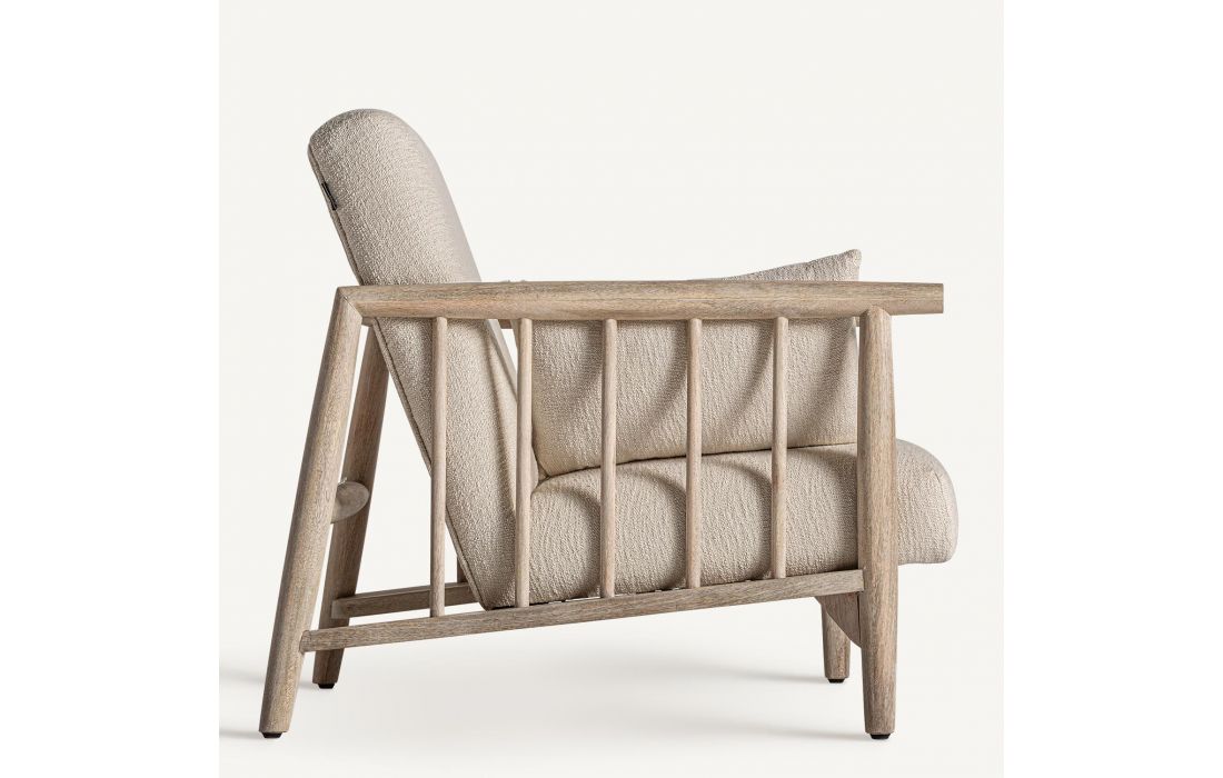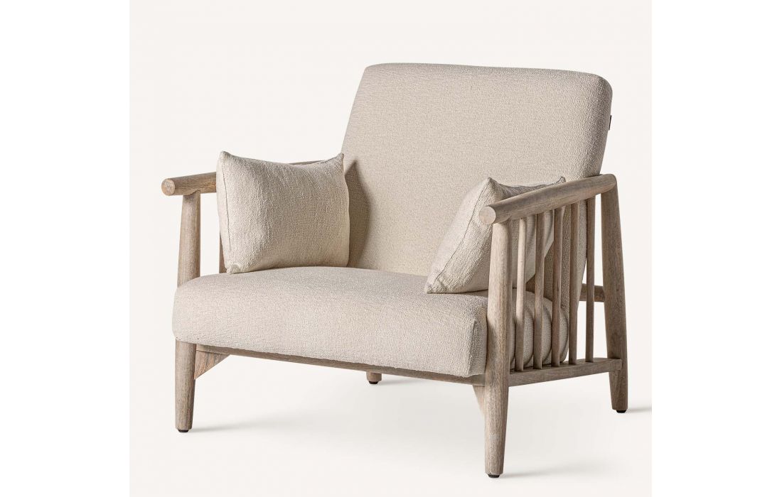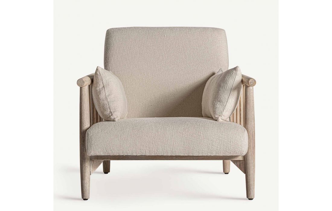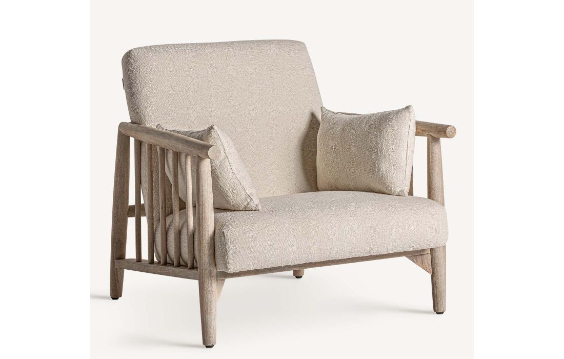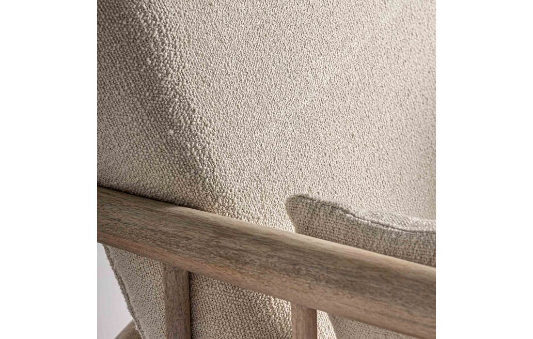 Poltrona com estrutura em madeira de betula, estofada em tecido de algodão cor branco roto