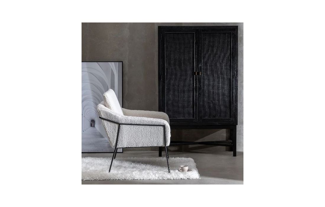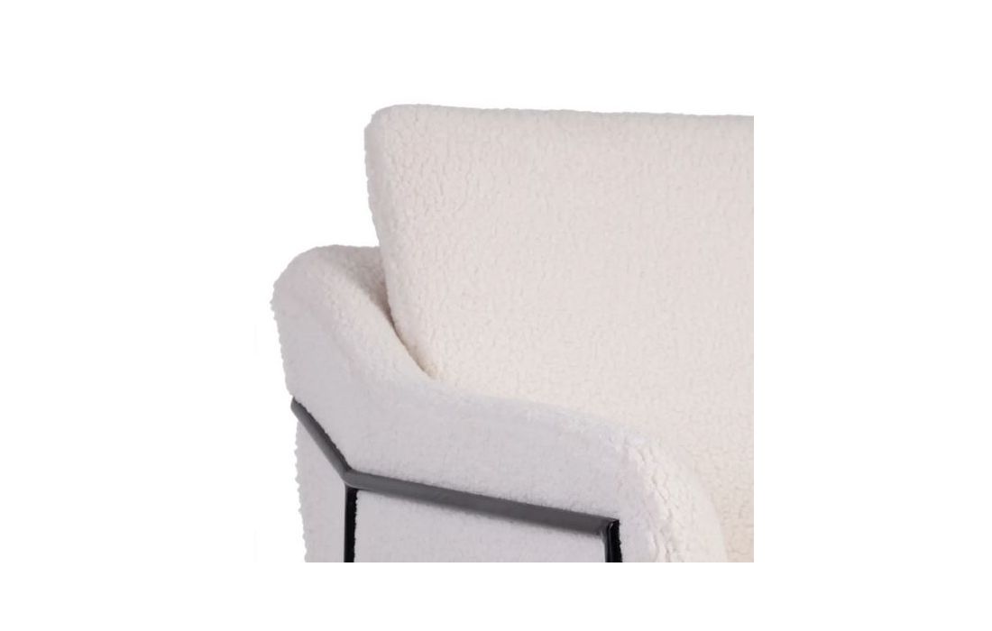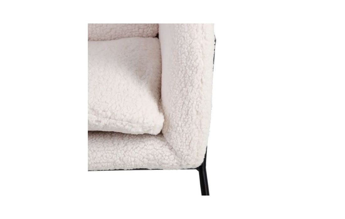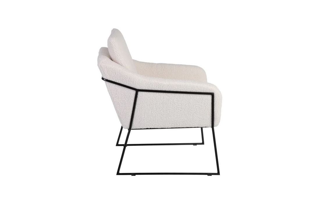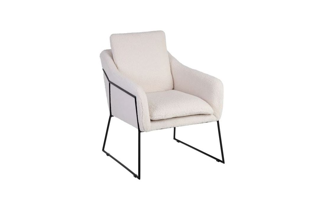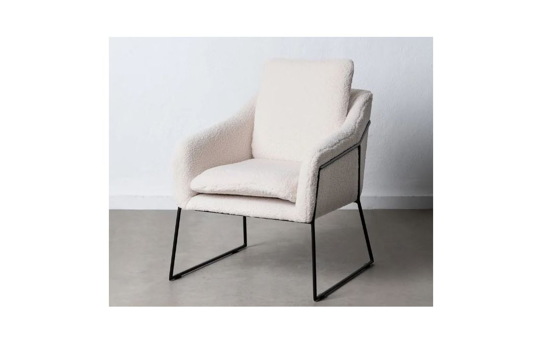 Poltrona com estrutura em metal preto e estofo em tecido 100% poliéster cor branco cru
