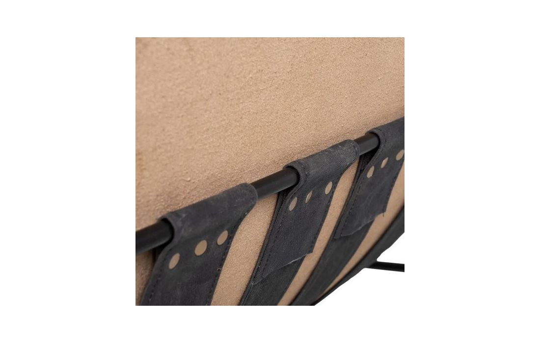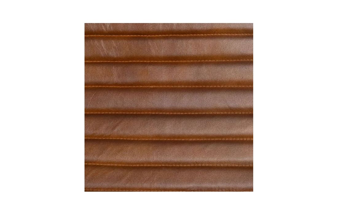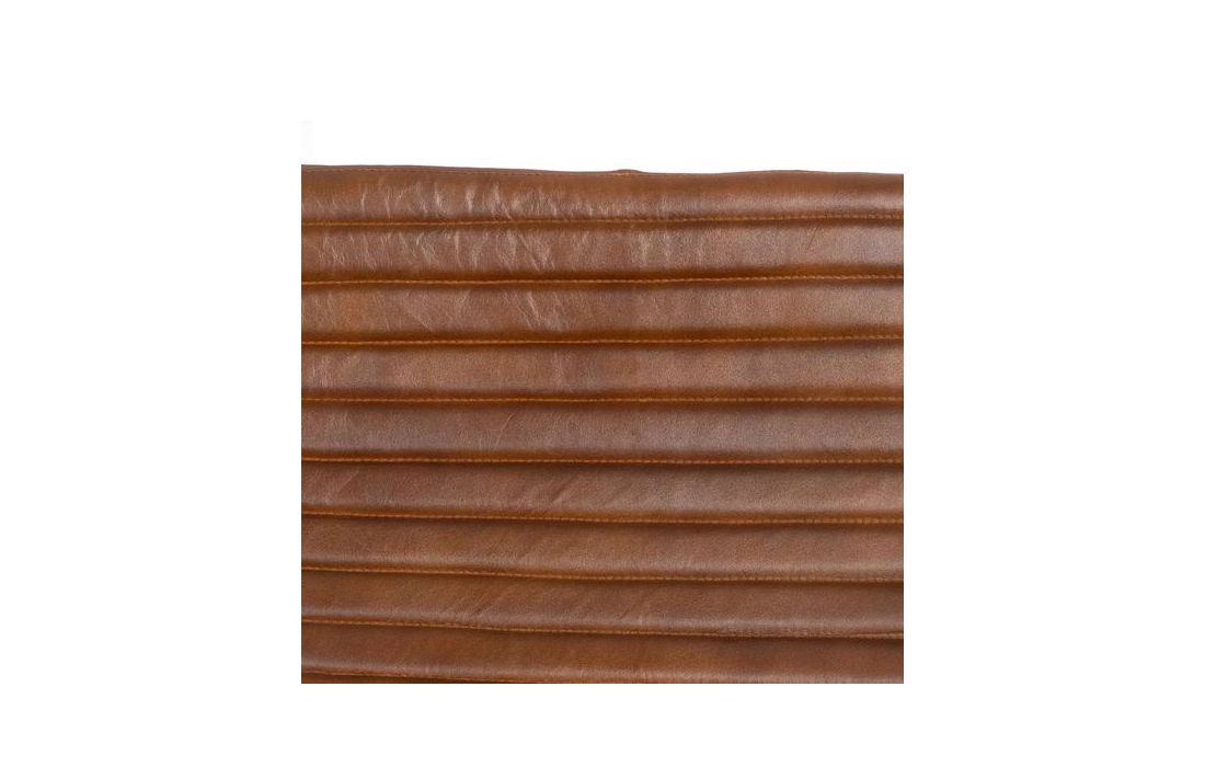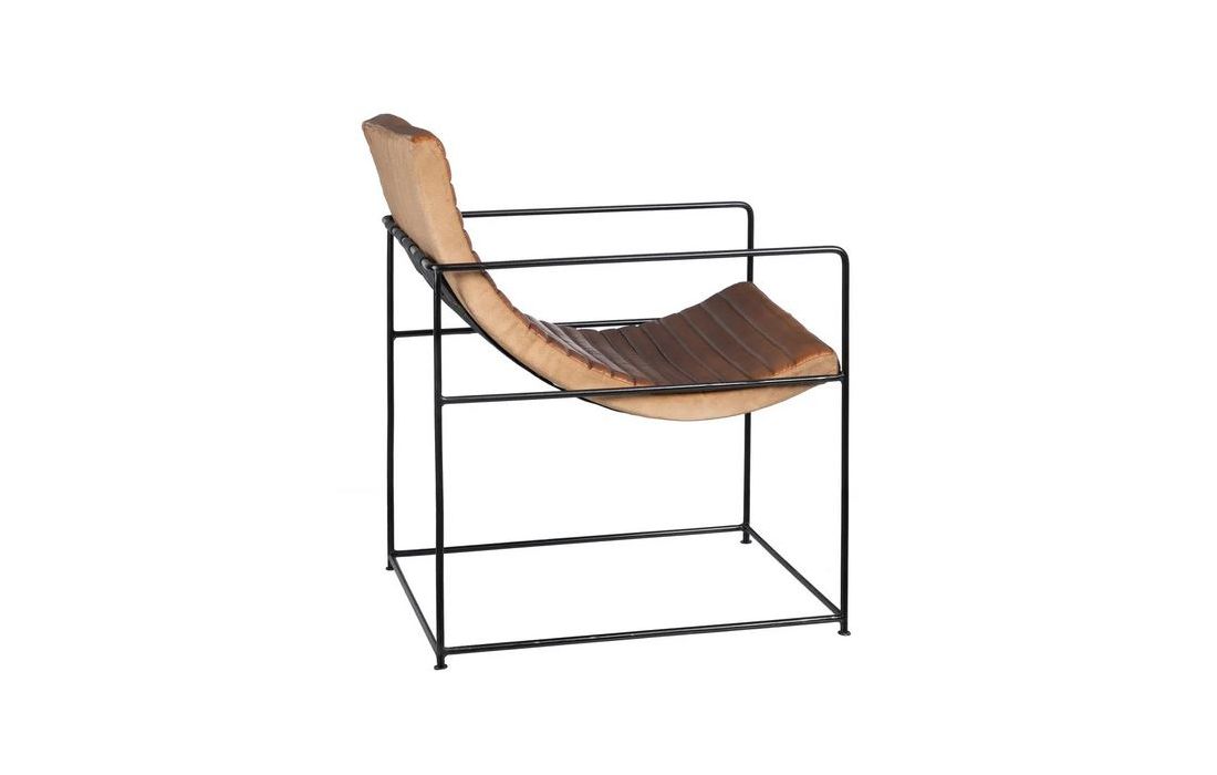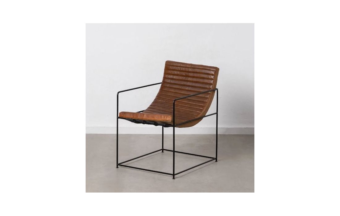 Poltrona com estrutura em ferro preto e estofada em pele cor castanha