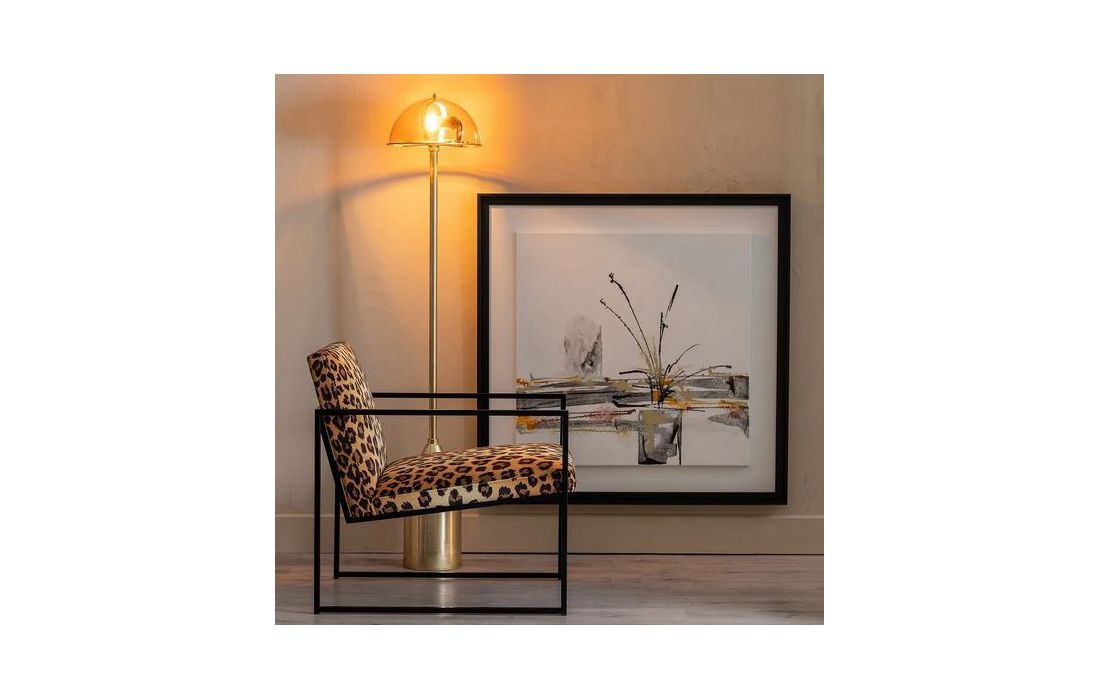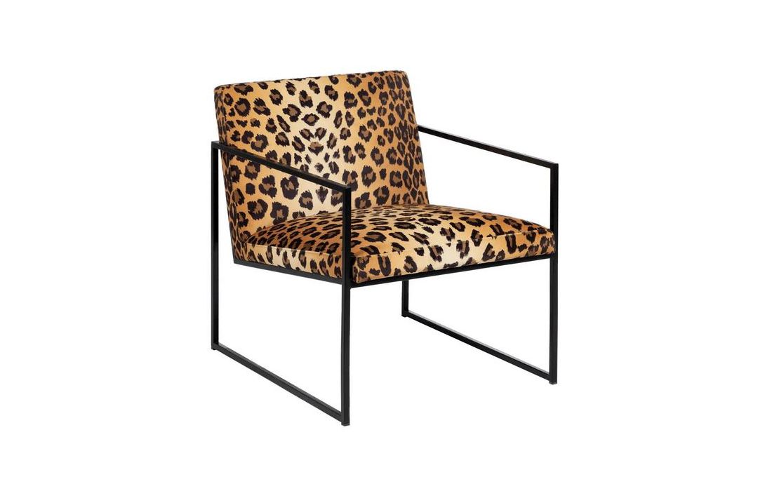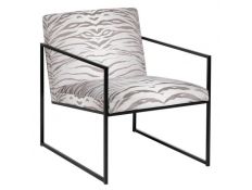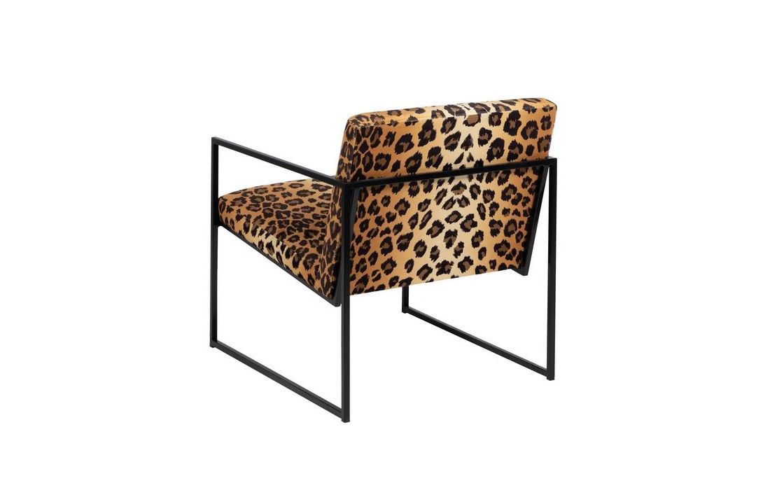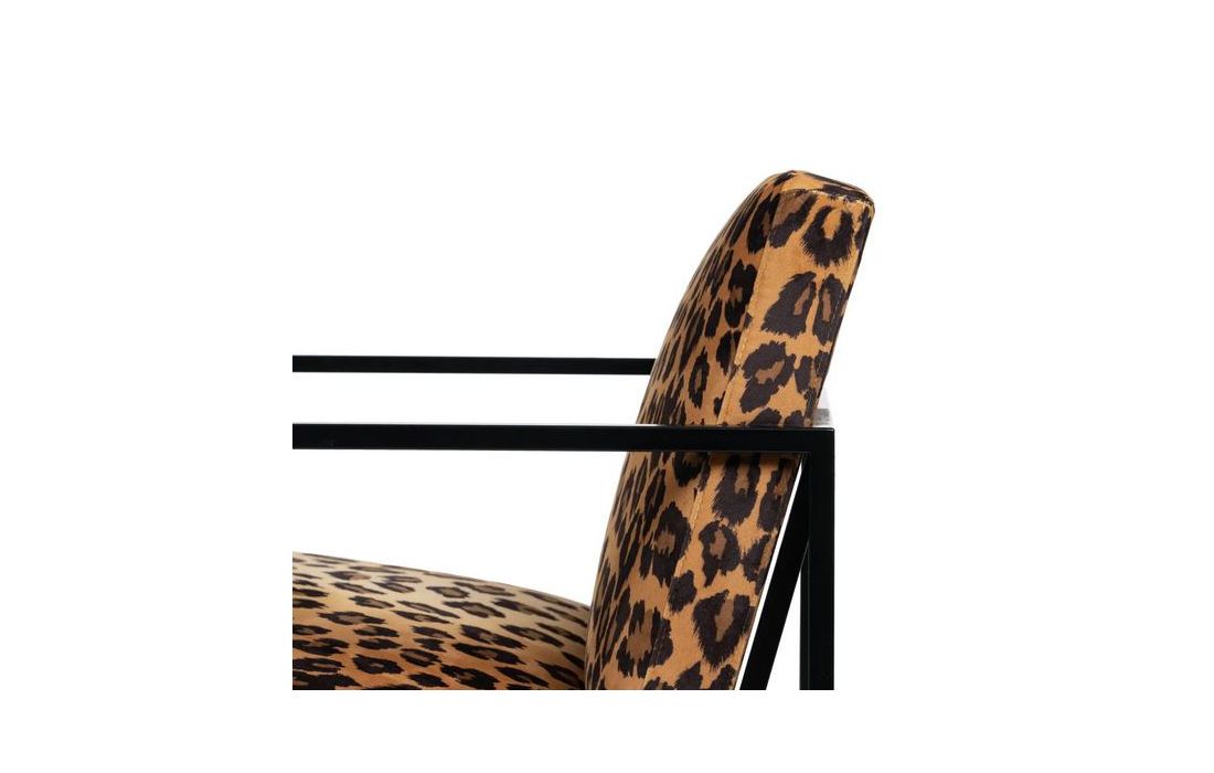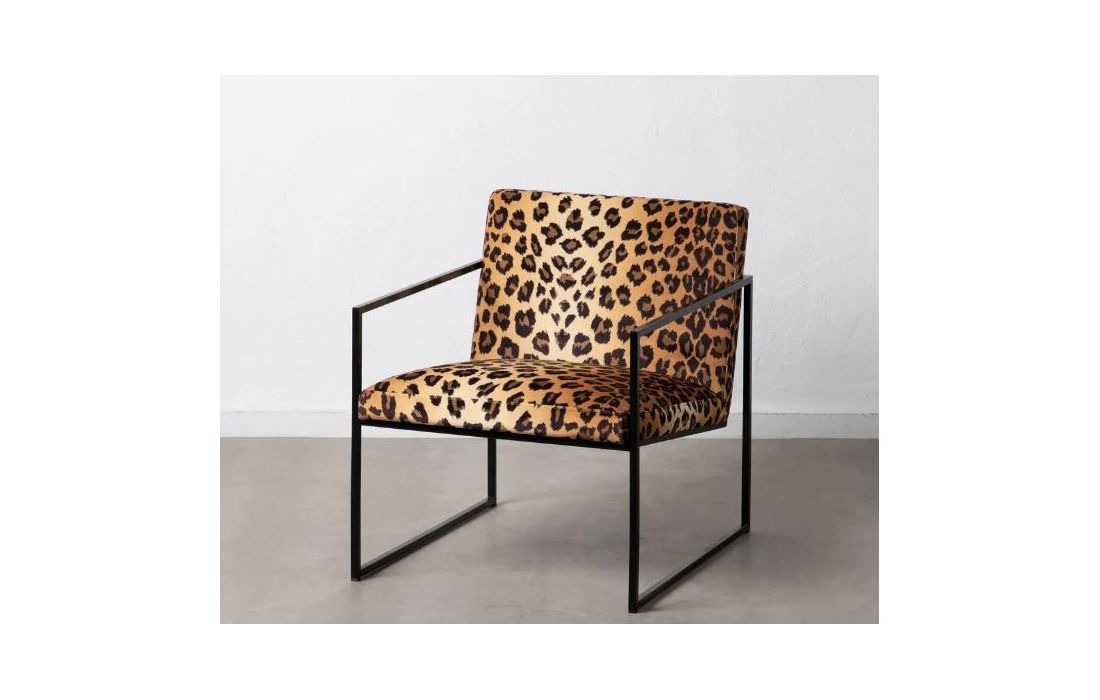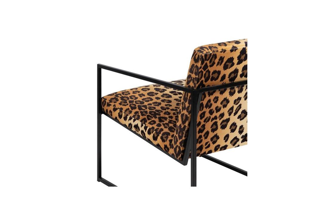 Poltrona com estrutura em metal preto e estofada em tecido 100% poliéster estampado de animal