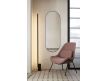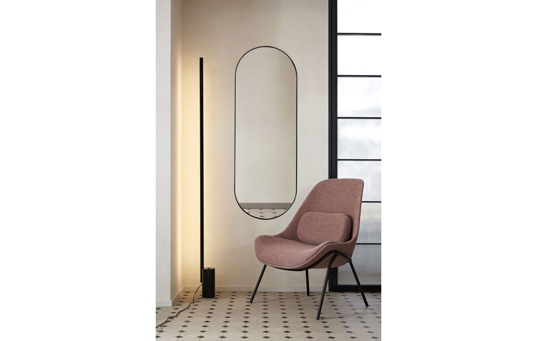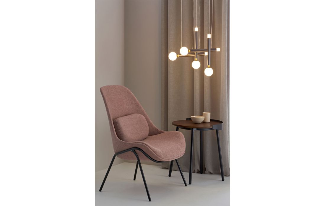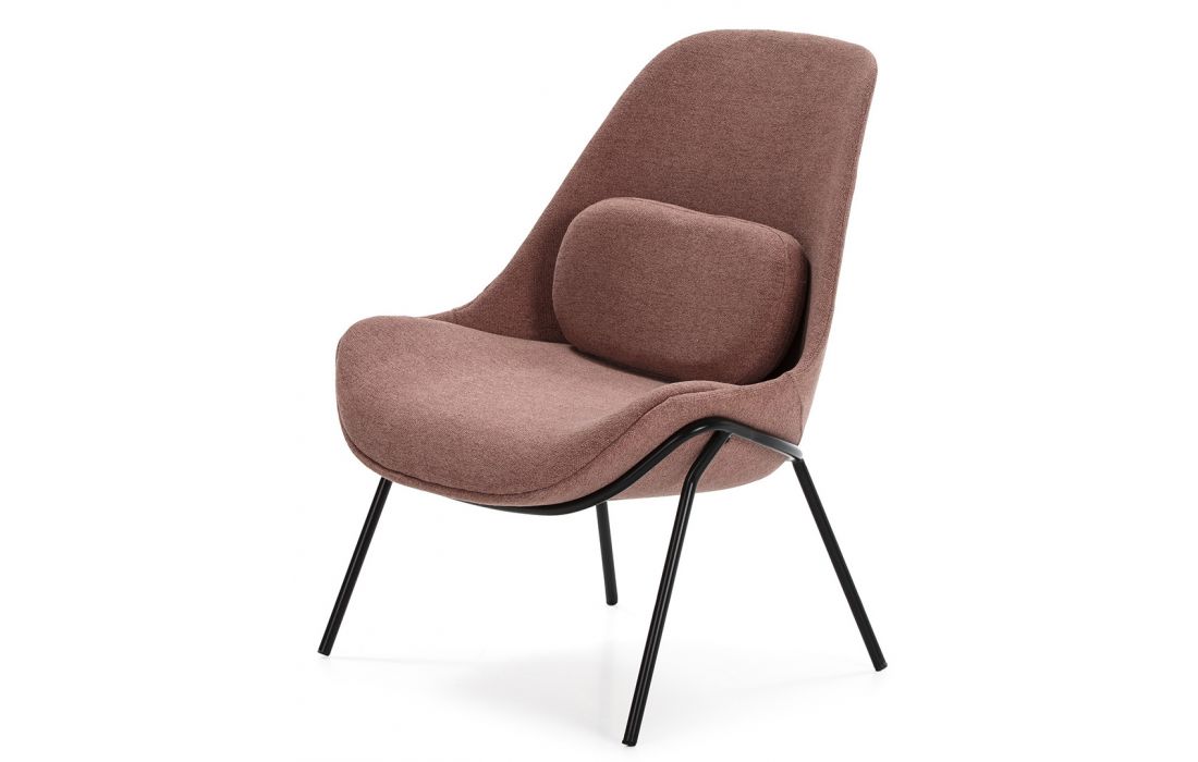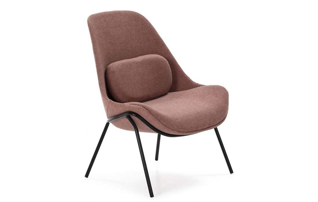 Poltrona com estrutura de metal preto e estofada em tecido polyester cor rosa