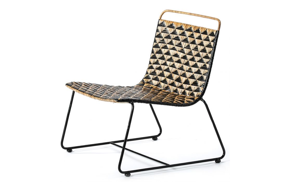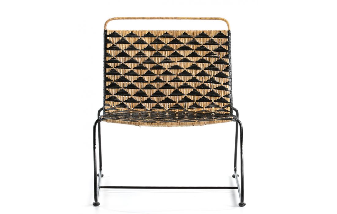 Cadeirão com estrutura em metal com pormenor de assento e costa feito em vime.