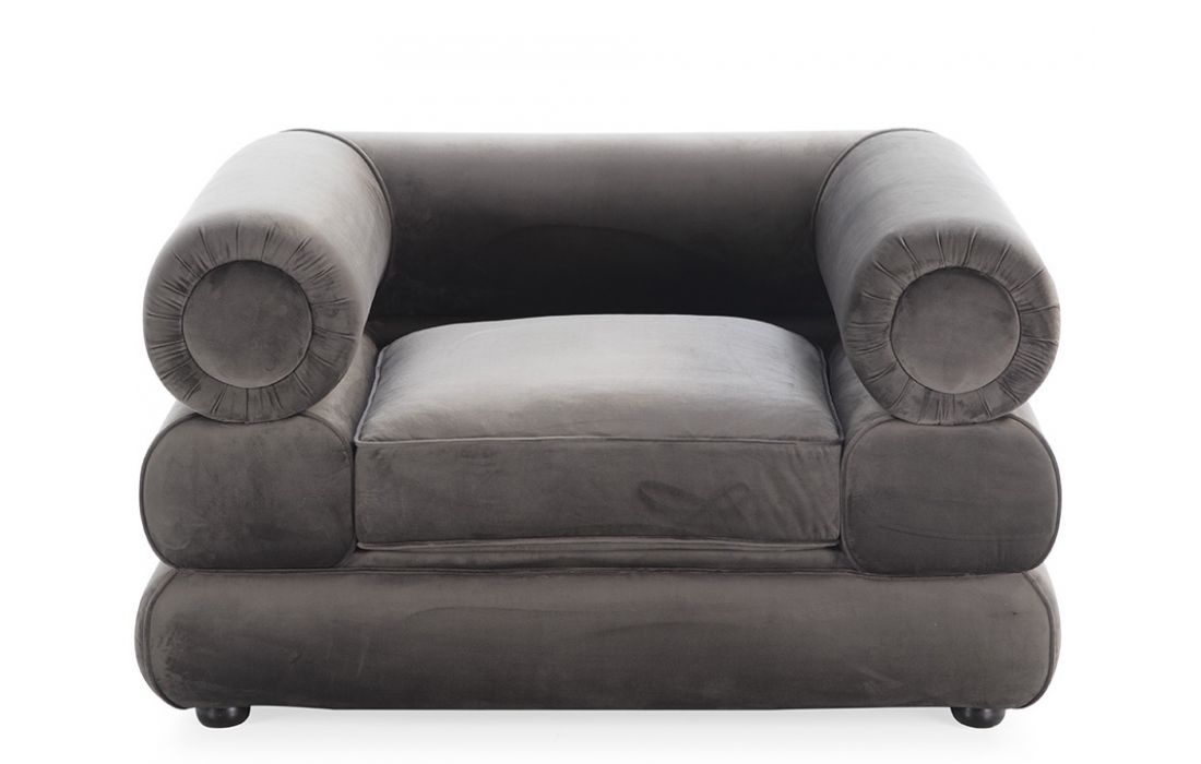 Poltrona com estofo em tecido aveludado 100% poliester cor cinza