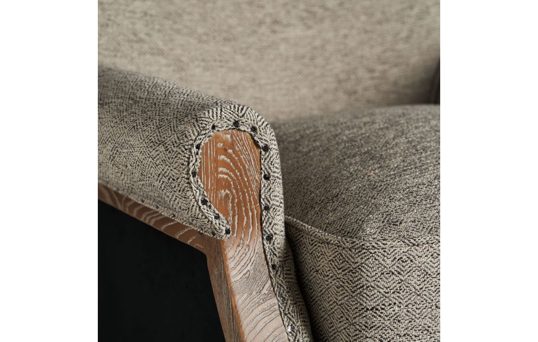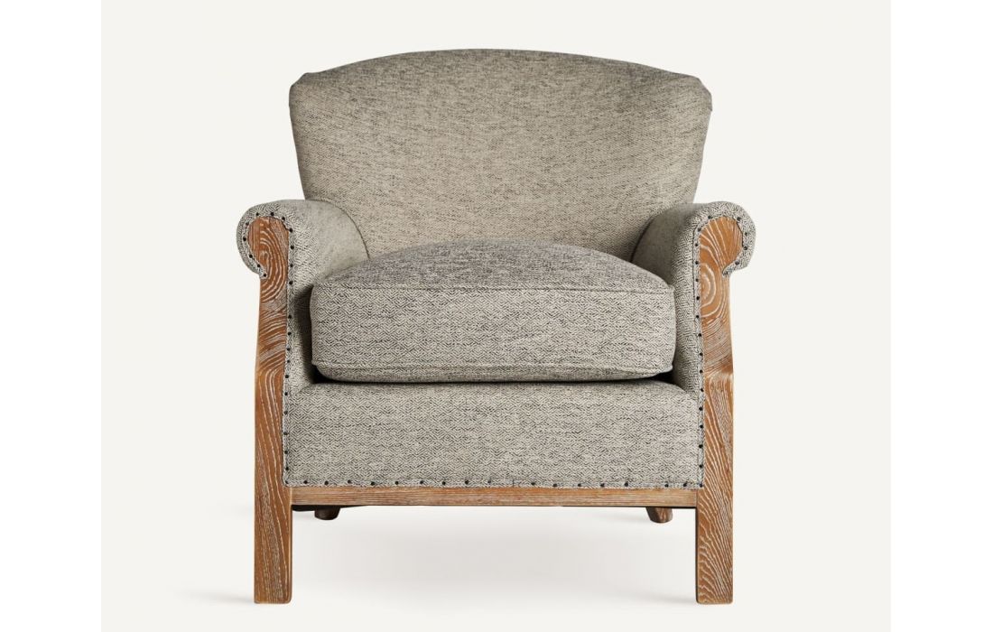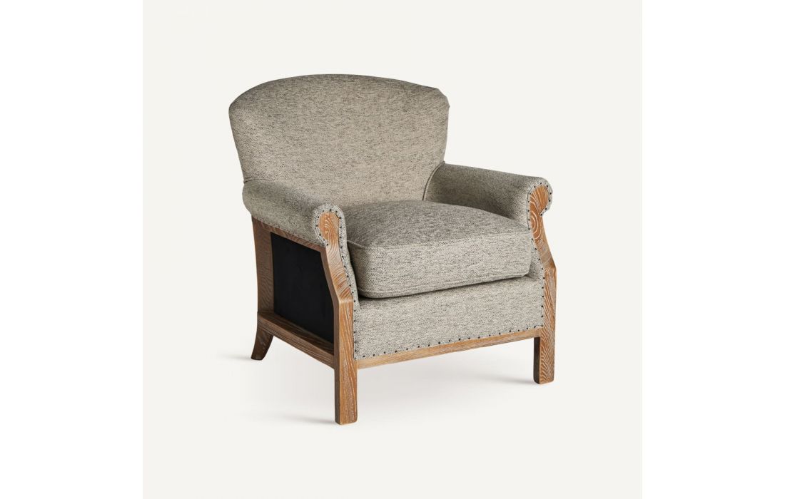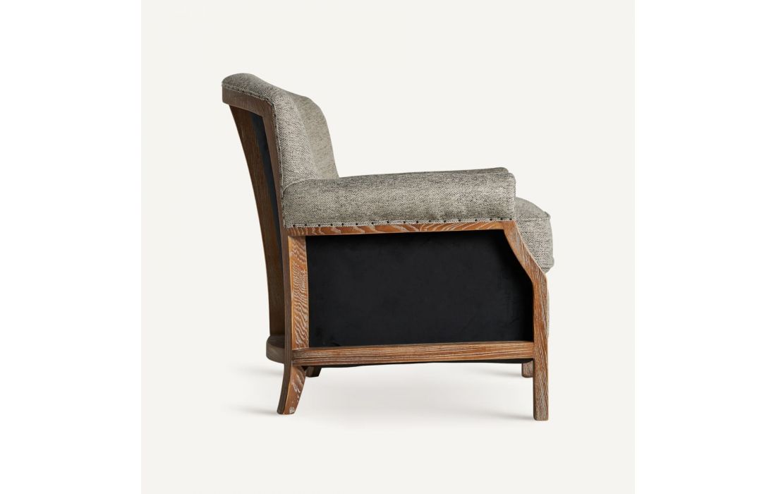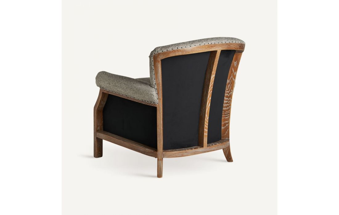 Poltrona em madeira de freixo com estofo em tecido.