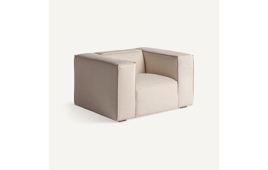 Poltrona em madeira de freixo com estofo em tecido de linho.
