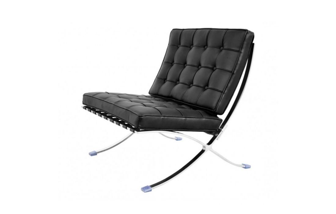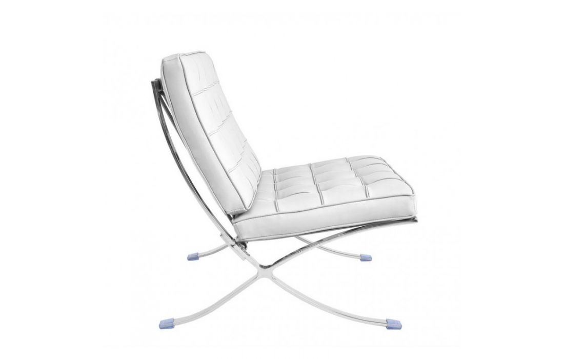 Poltrona revestida com pele sintética e estrutura de aço inoxidável.