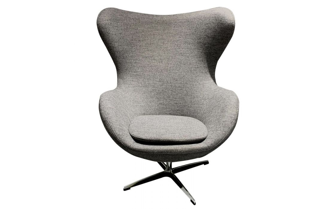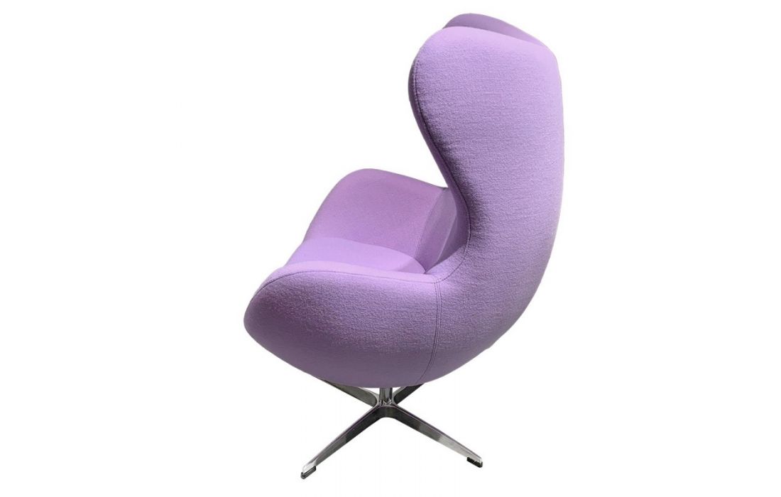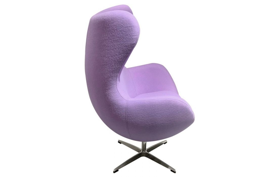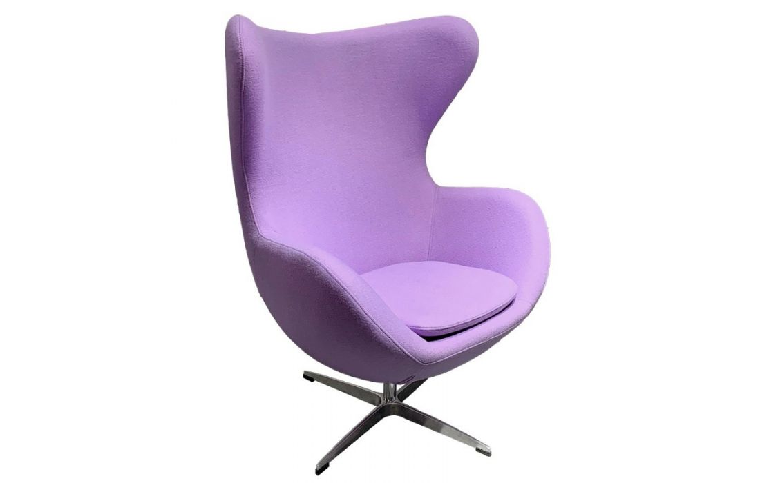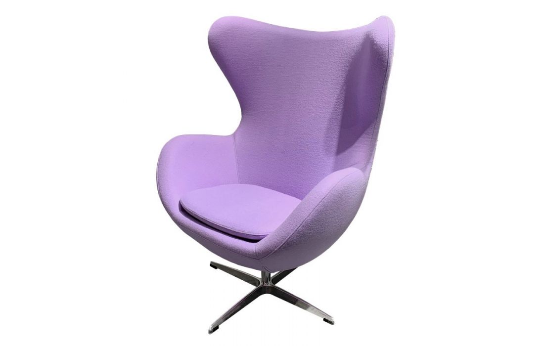 Poltrona giratória com estrutrutura em metal e revestida com tecido cachemir nas cores lilás e cinzento.