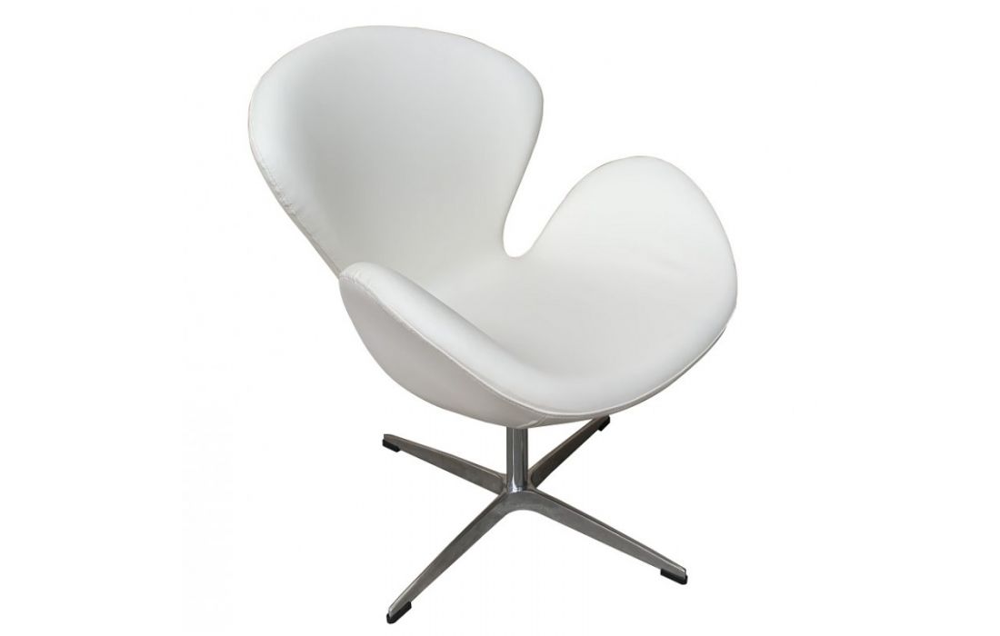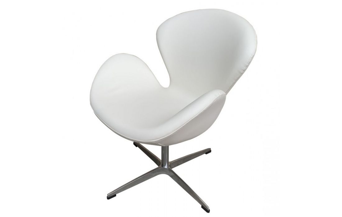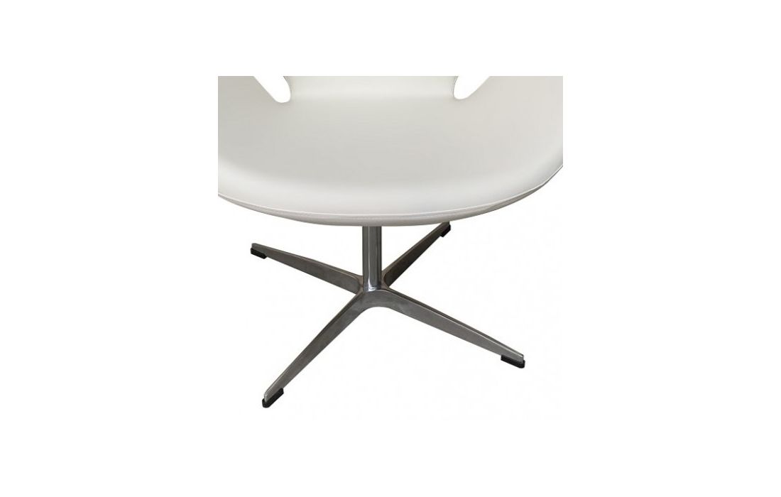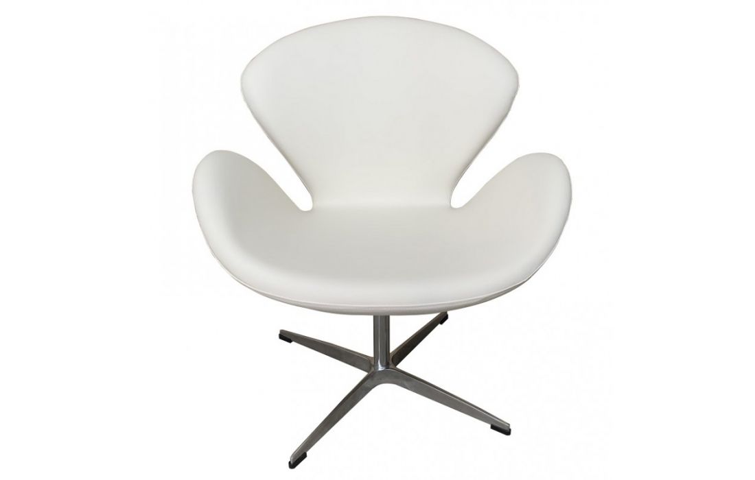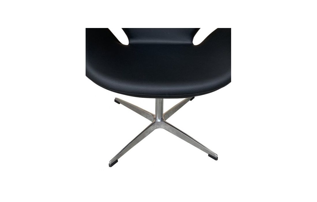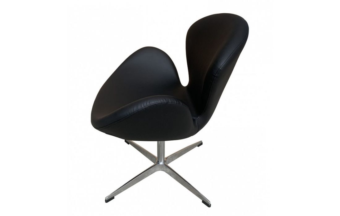 Poltrona giratória com base e coluna cromadas estofada em pele sintética.