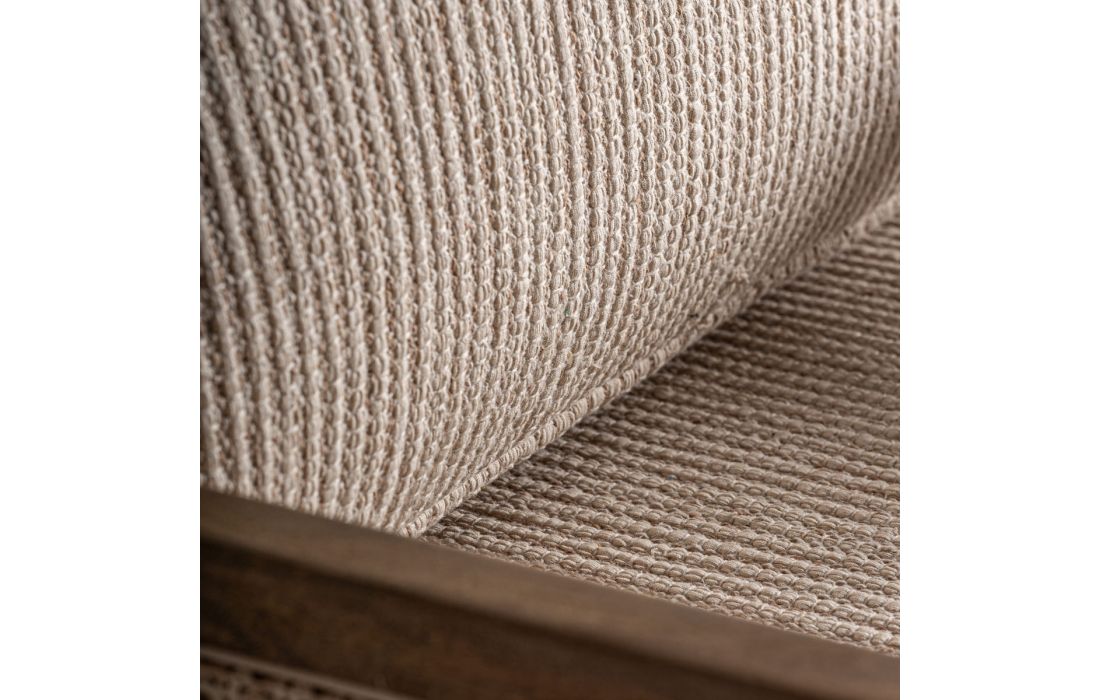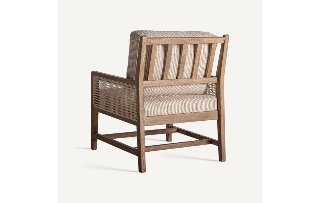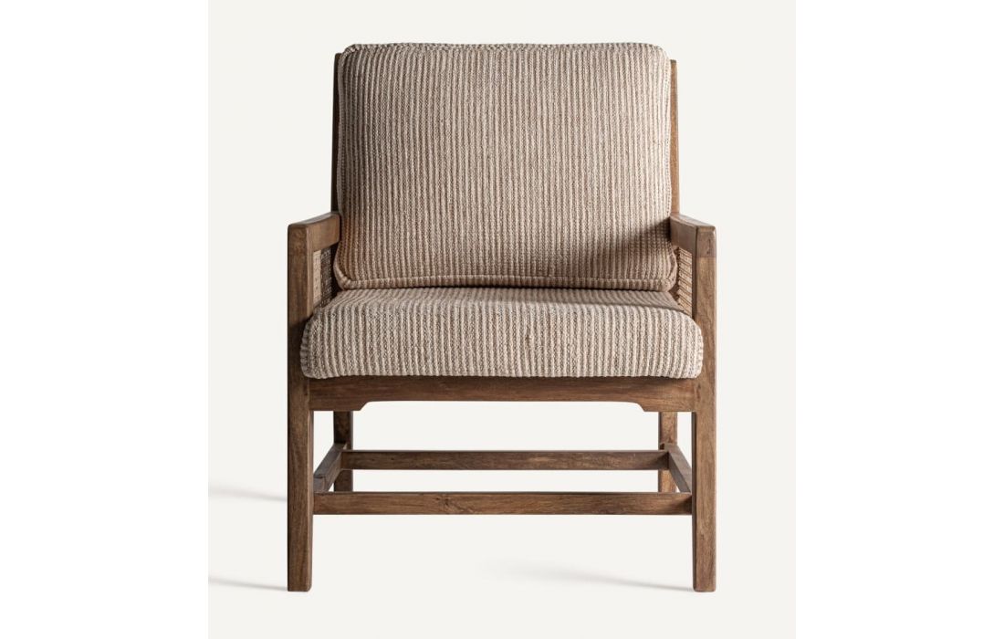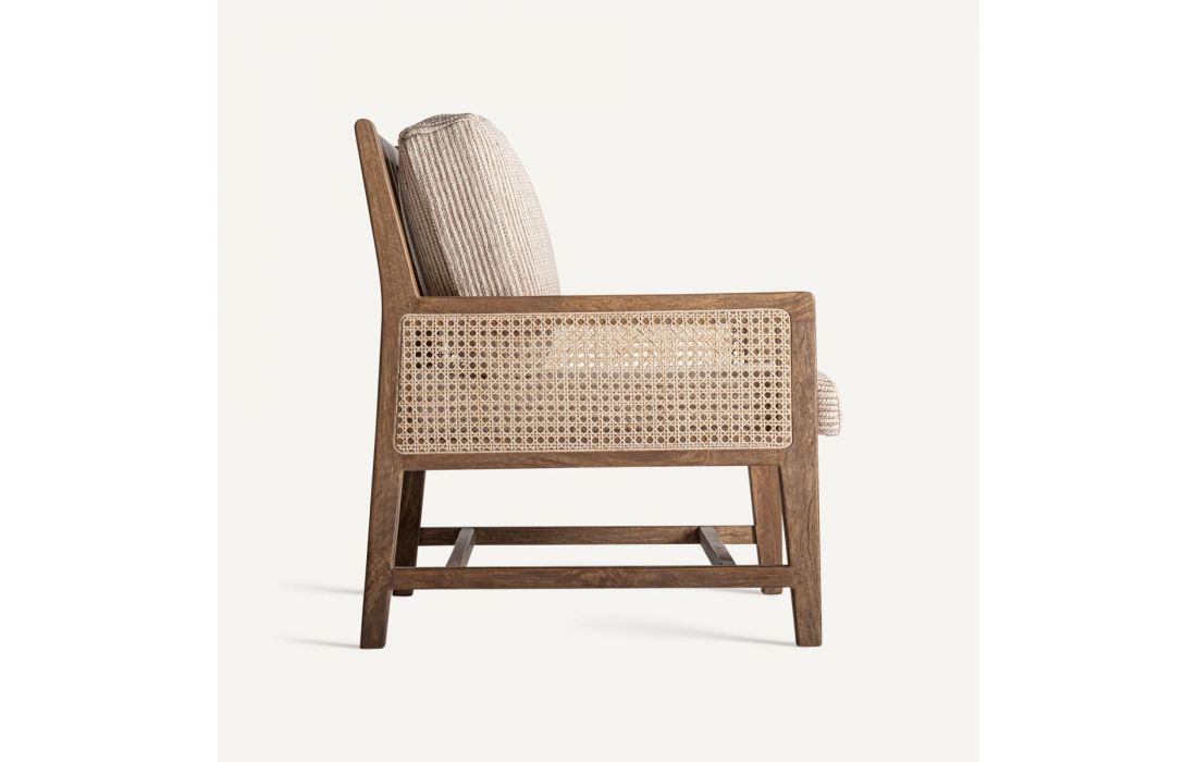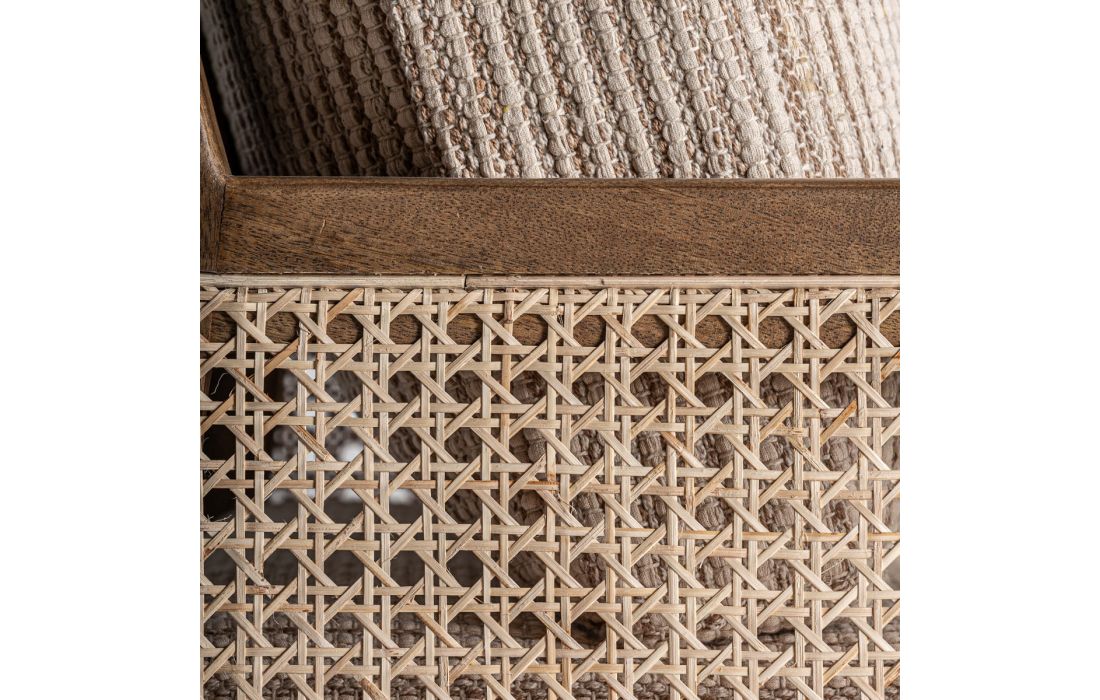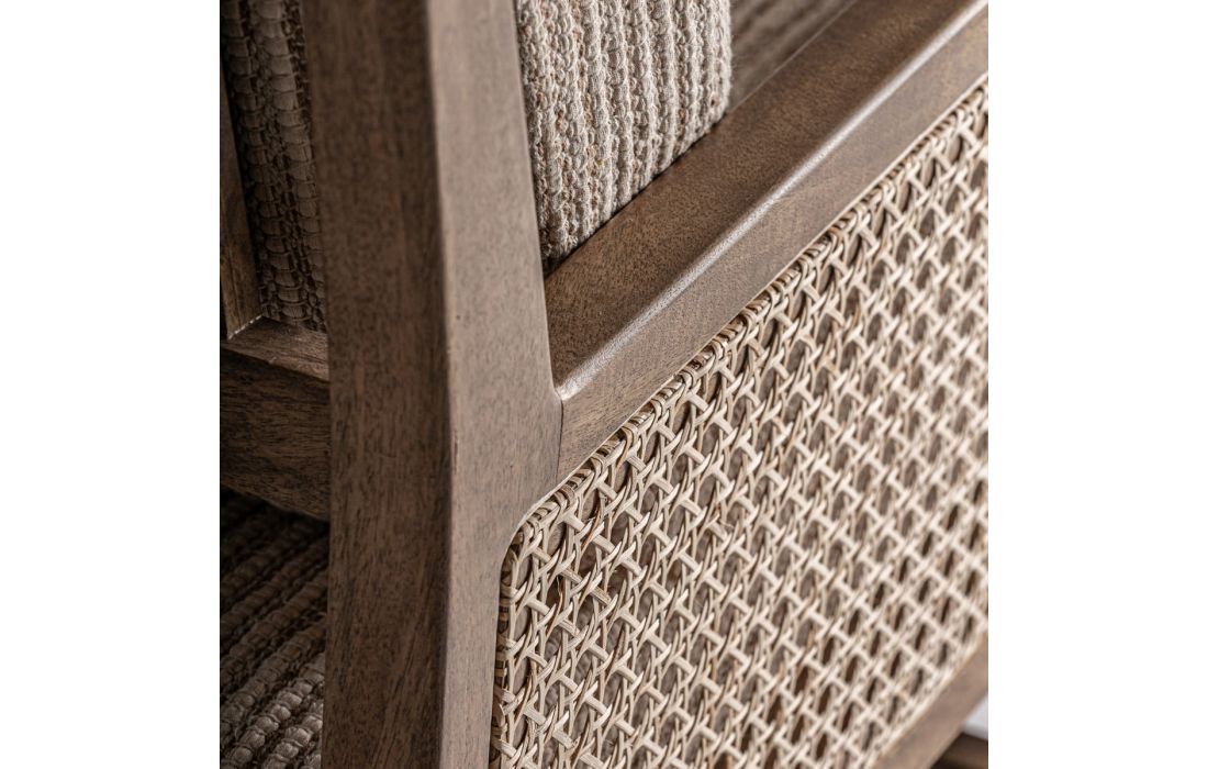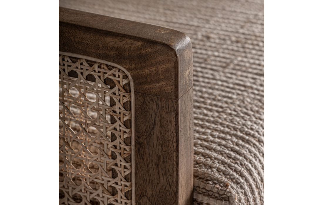 Poltrona estilo clássico feita em madeira de mango, palhinha e MDF na cor castanha