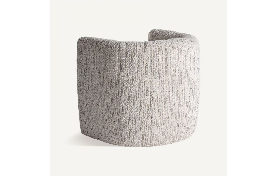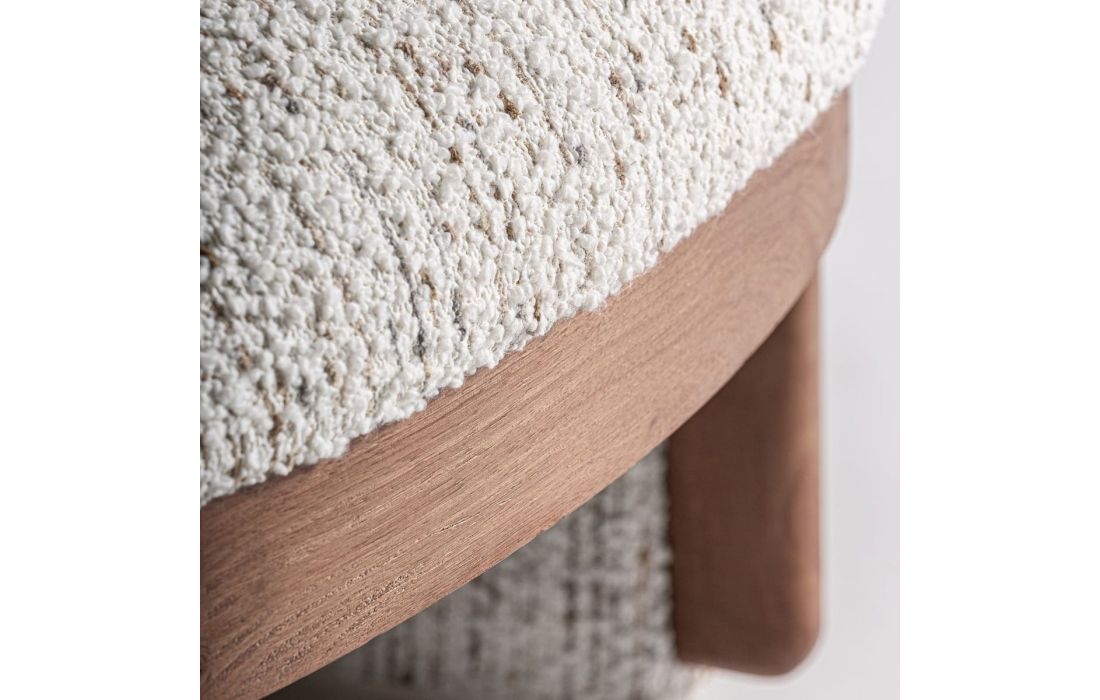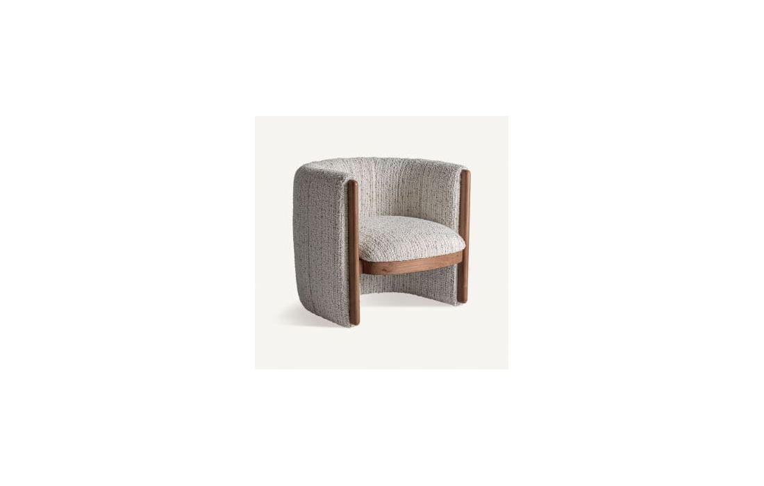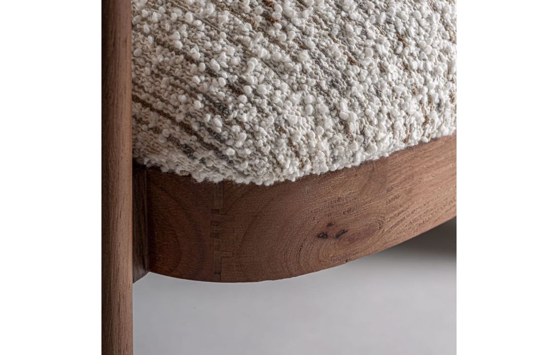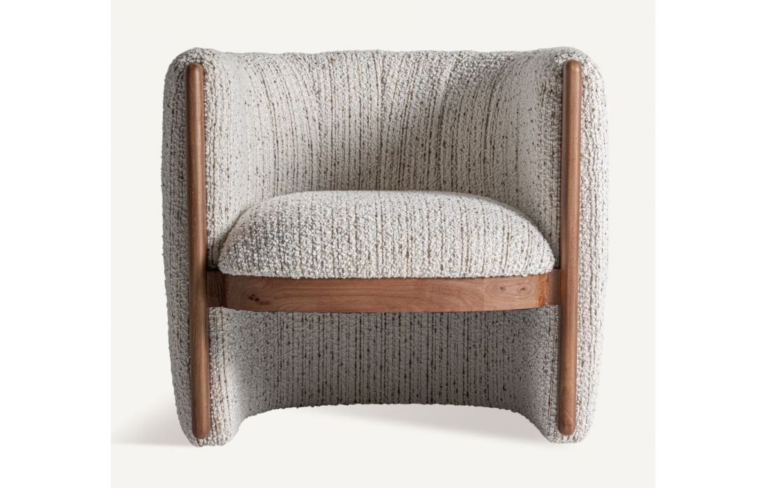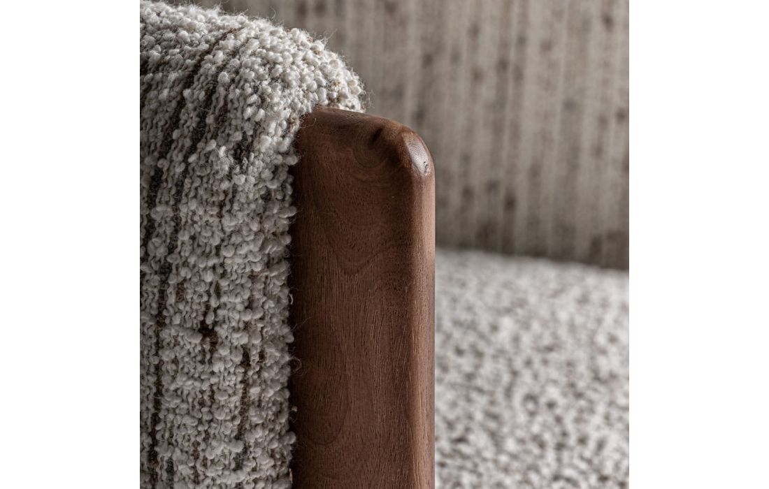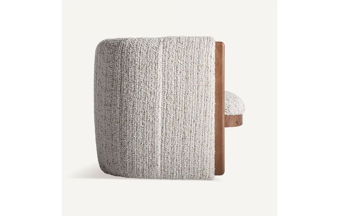Poltrona feita em madeira de pinho e tecido na cor castanha