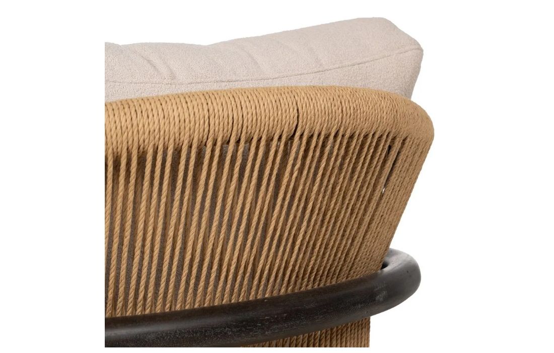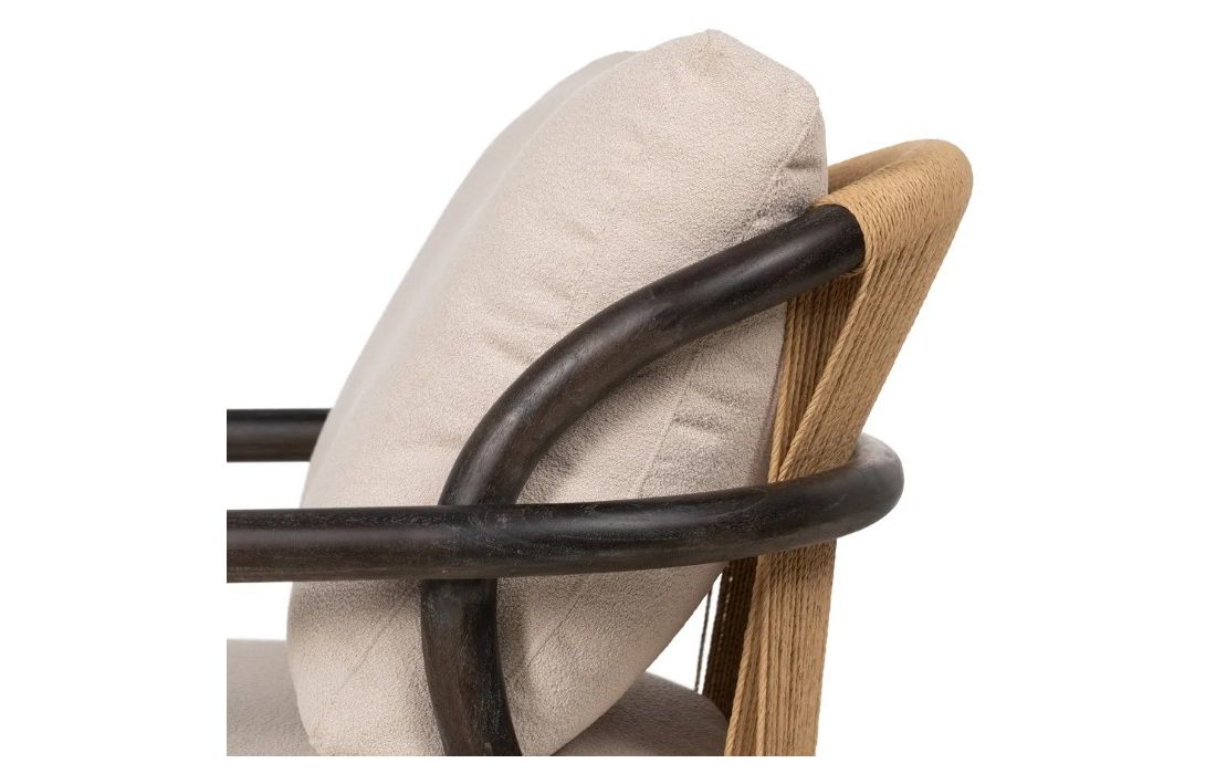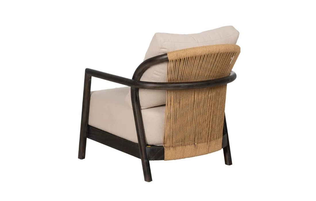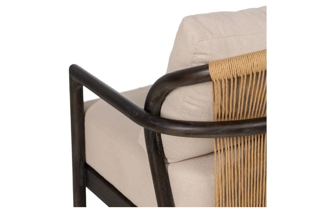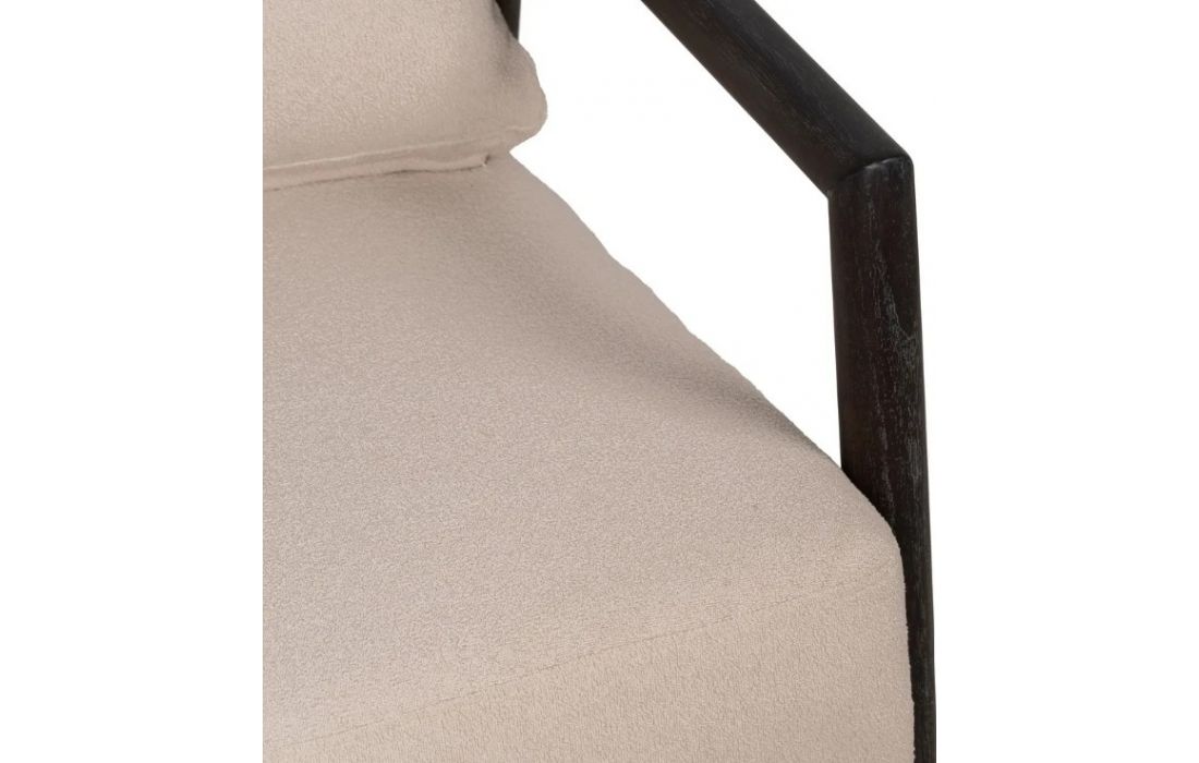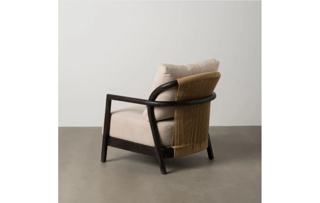 Poltrona de design moderno com estrutura em tecido 100% poliéster, enchimento esponja e madeira mindi.