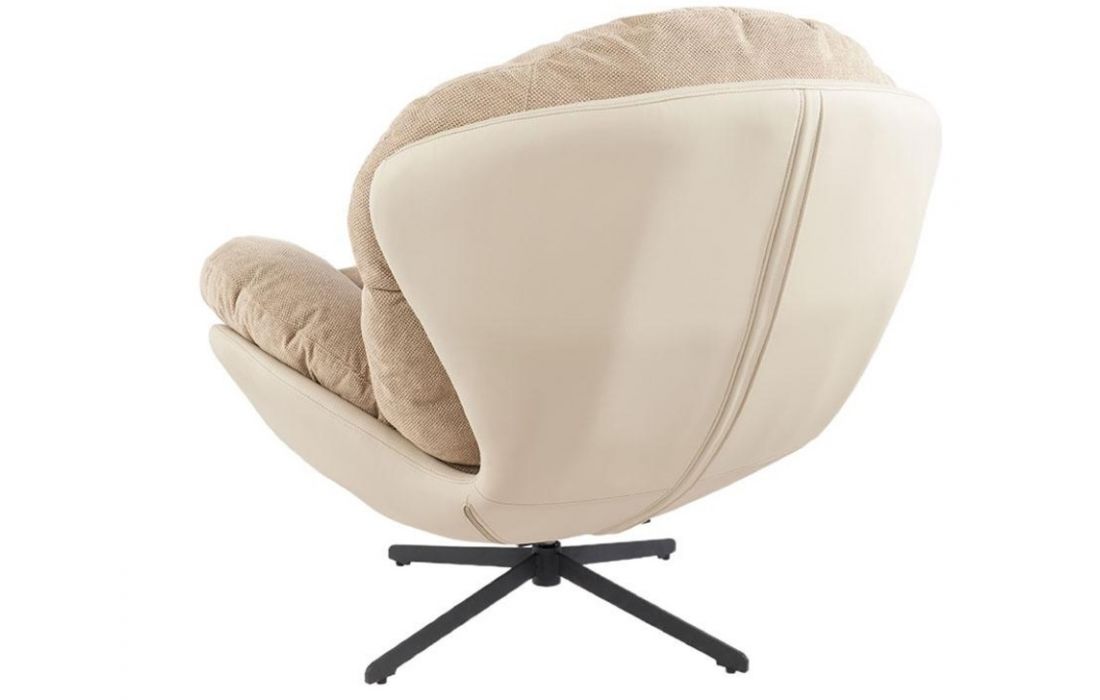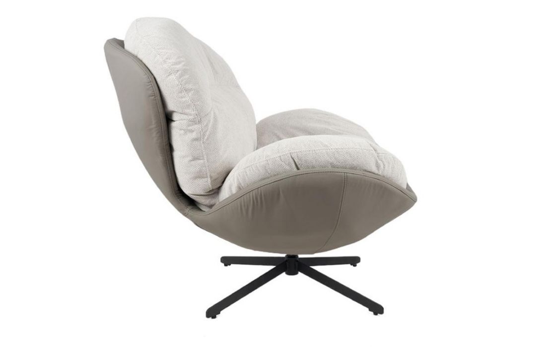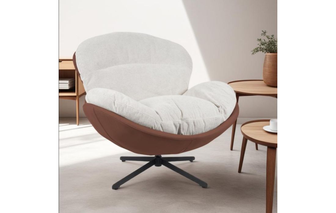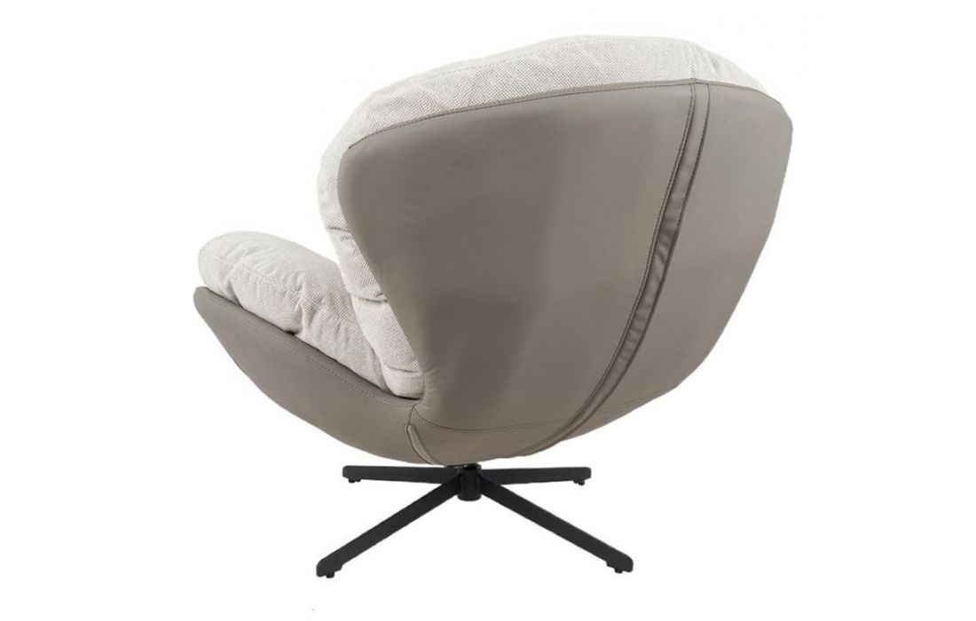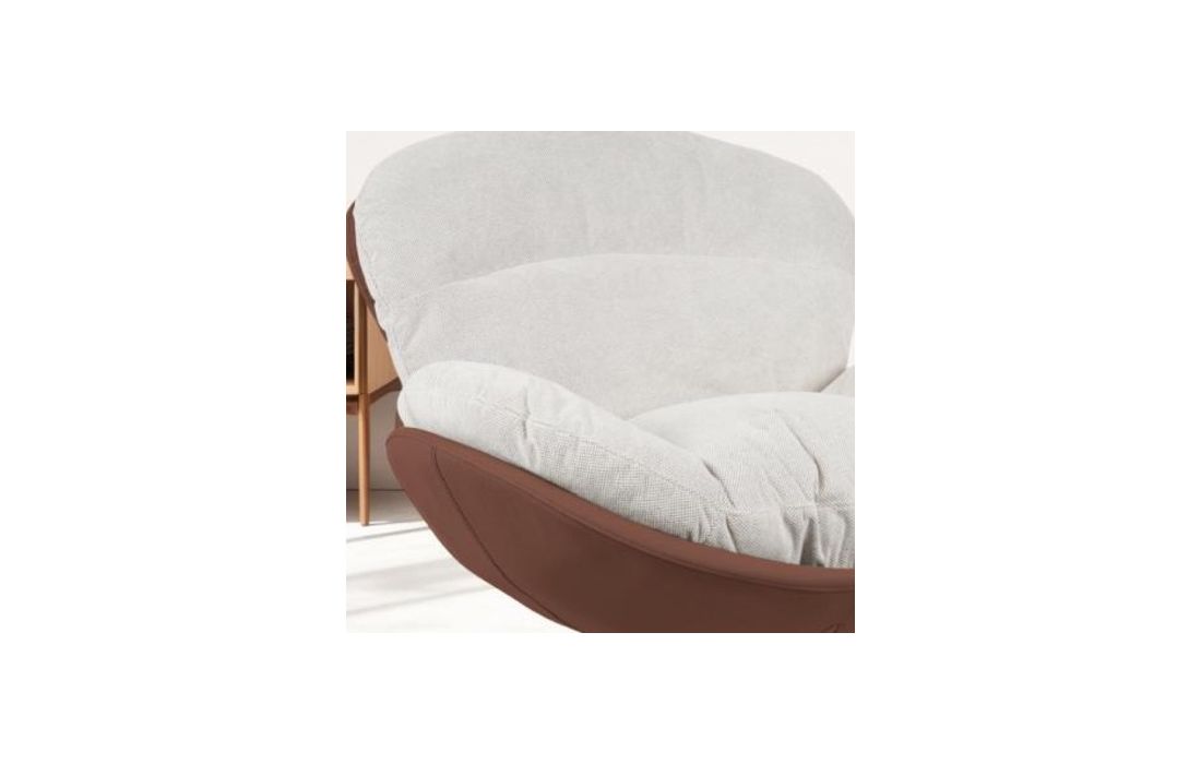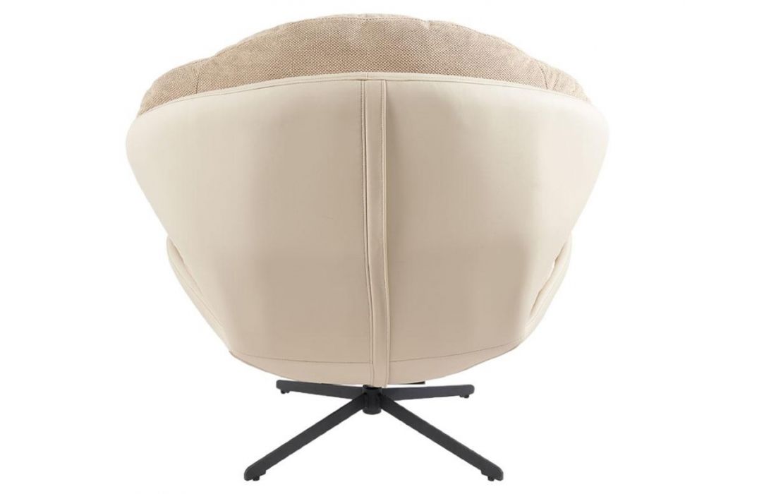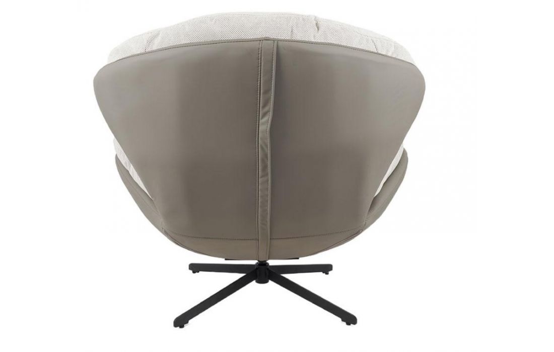 Poltrona giratoria com estrutura em tecido e pele com pés em metal.
