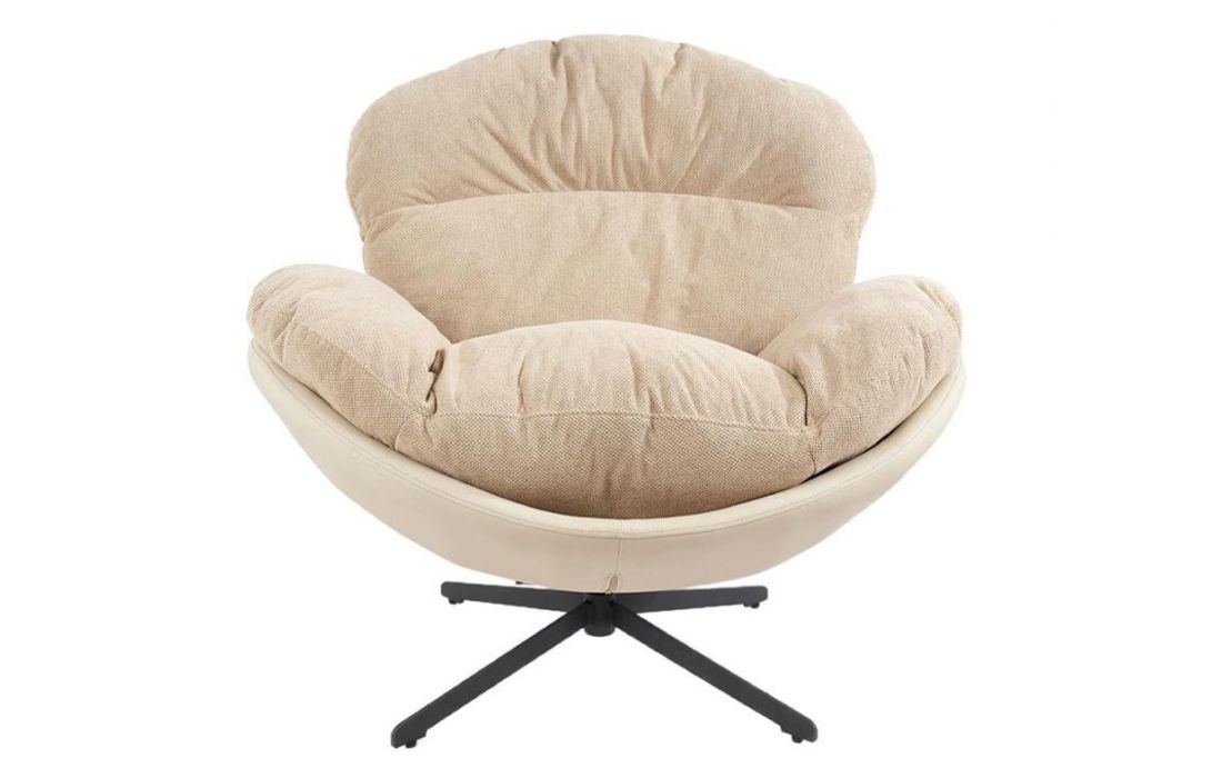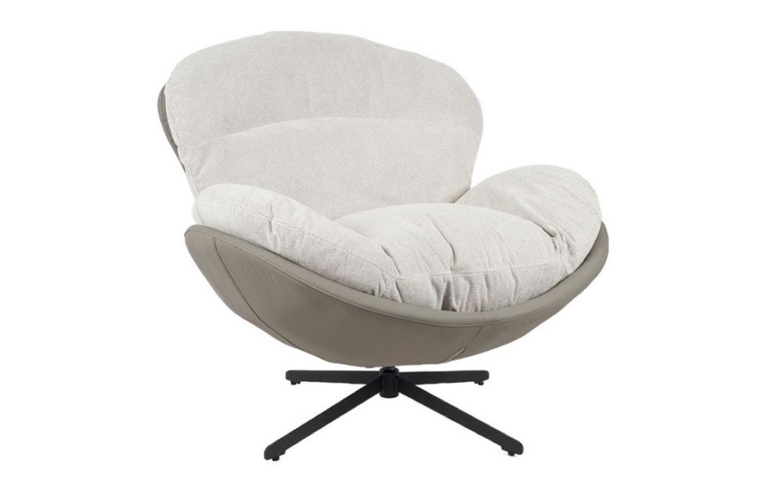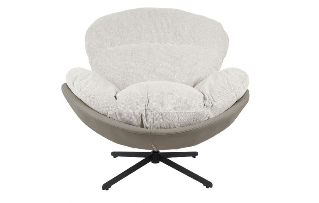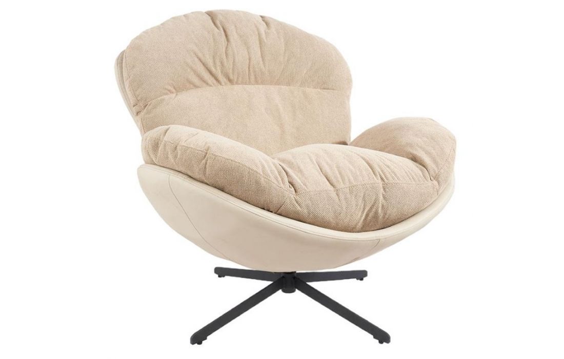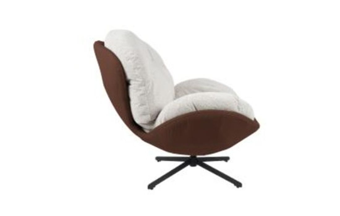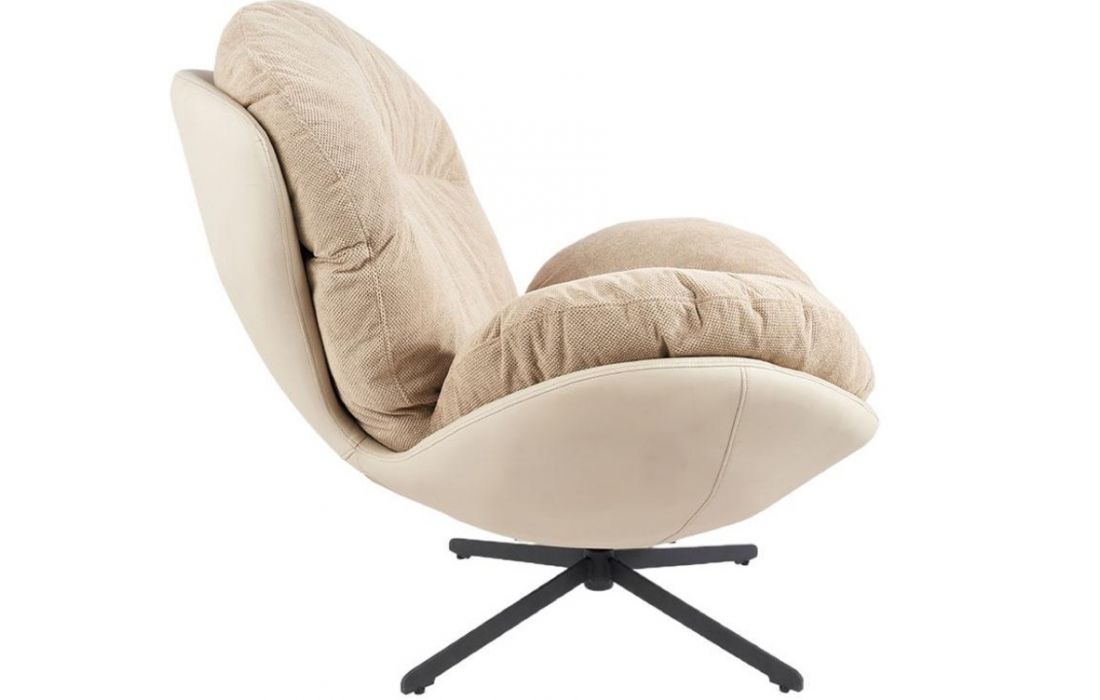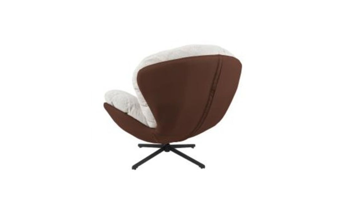 Poltrona giratoria com estrutura em tecido e pele com pés em metal.