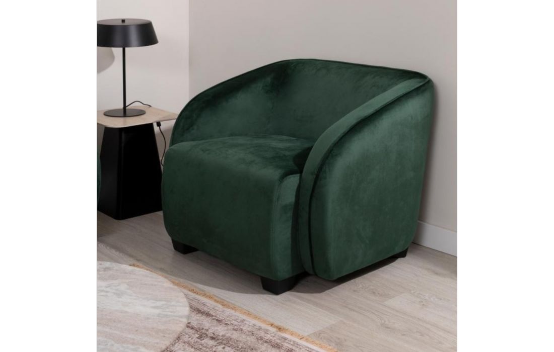 Poltrona com estrutura em veludo com pés em metal.