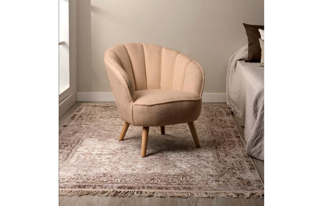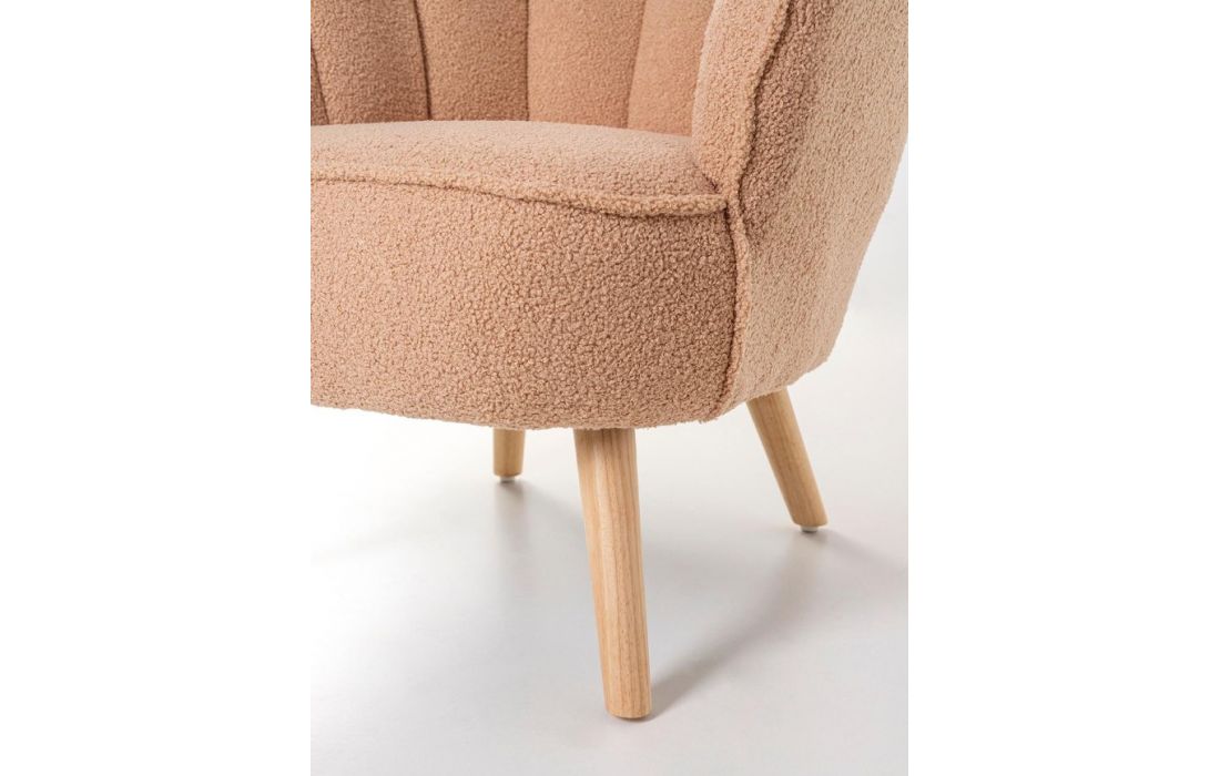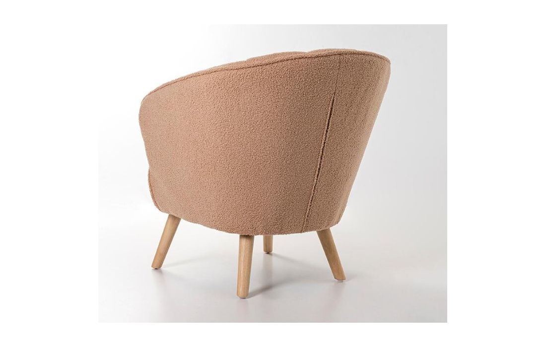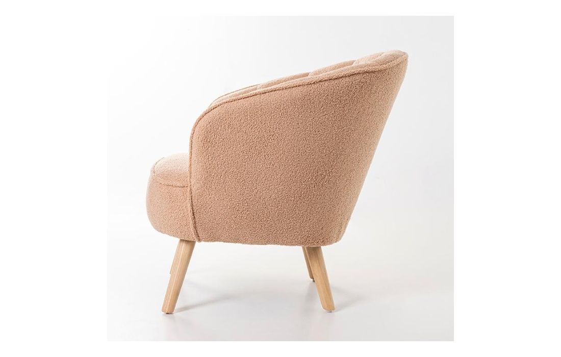 Poltrona com tecido em bouclé com pés em madeira. Cor bege.