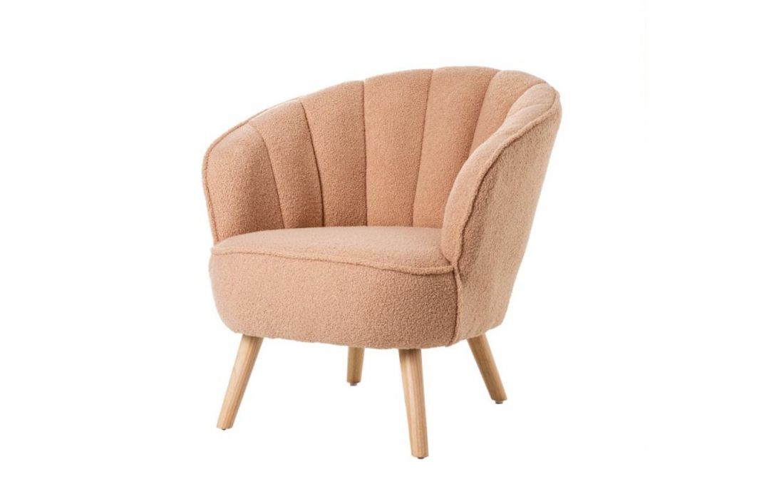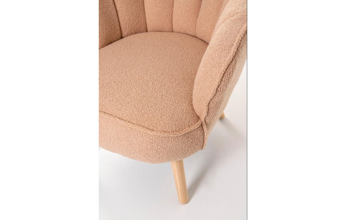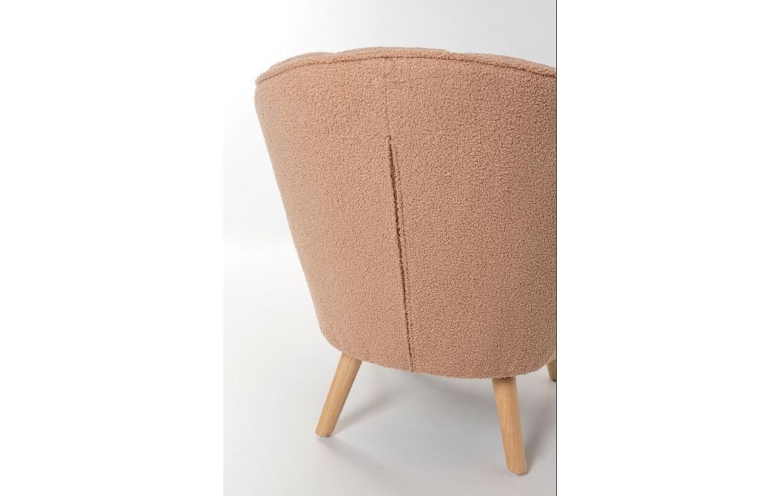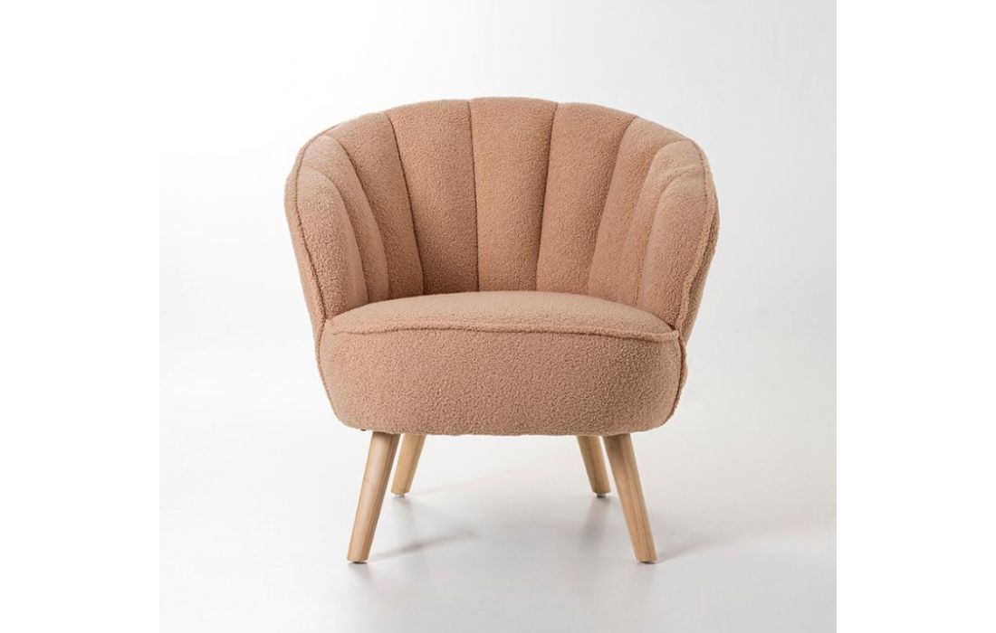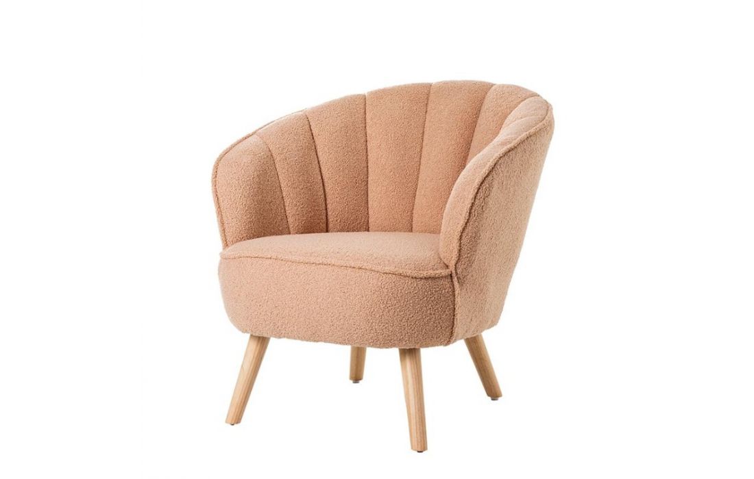 Poltrona com tecido em bouclé com pés em madeira. Cor bege.