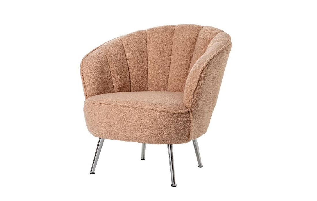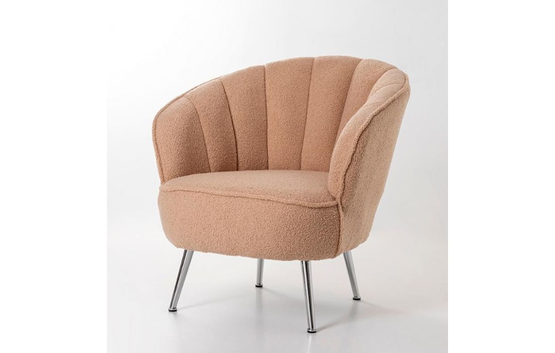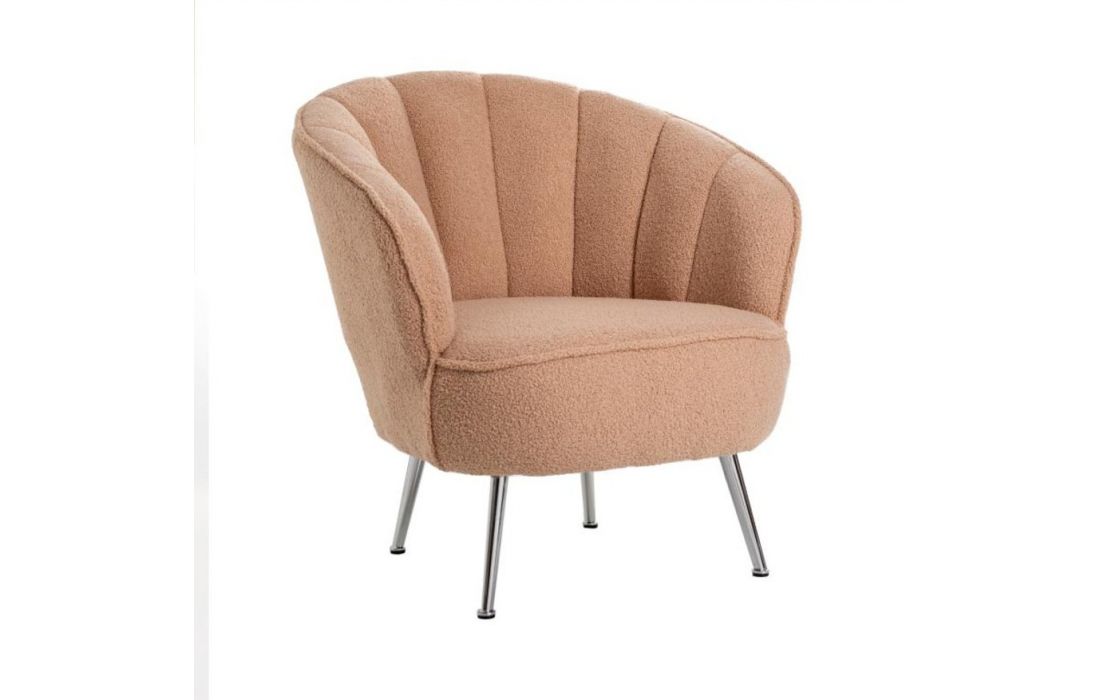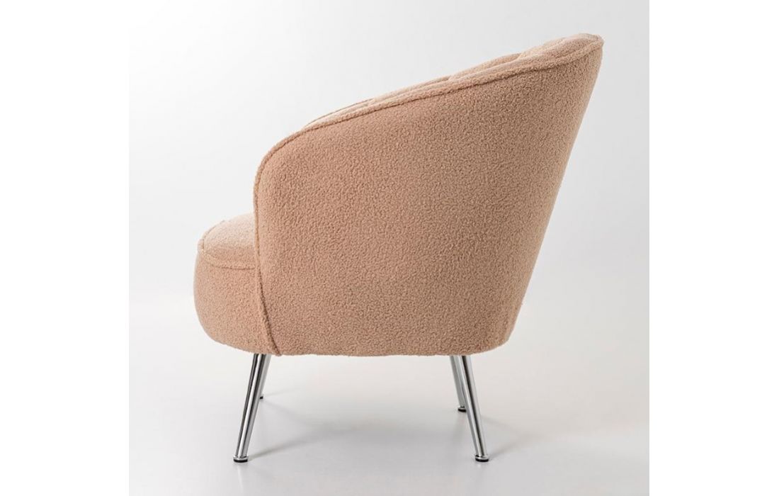 Poltrona com tecido em bouclé com pés em metal. Cor bege.