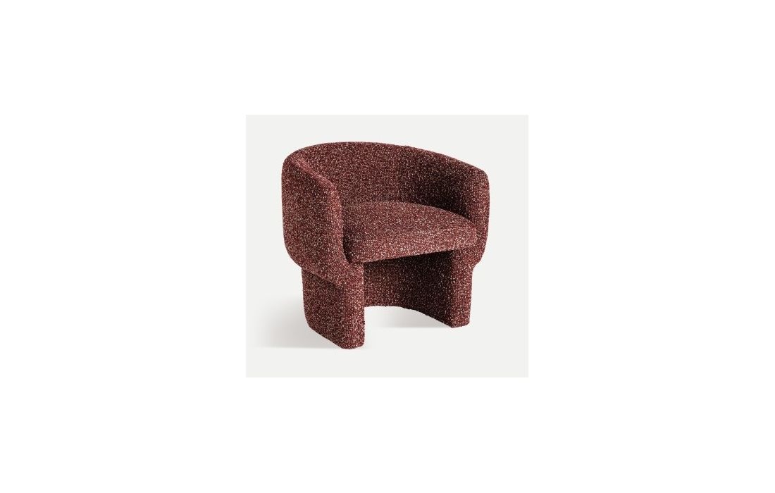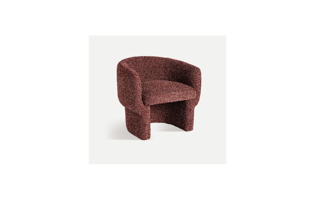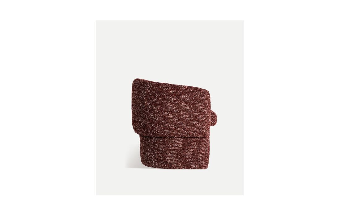 Poltrona com design moderno com linhas curvas em tecido.