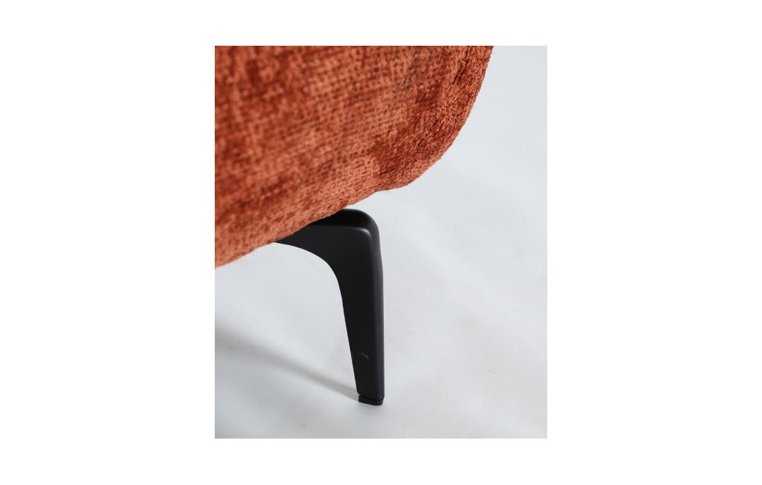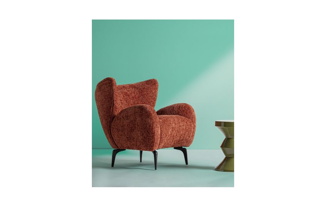 Poltrona com design moderno de linhas curvas em tecido e pernas em metal