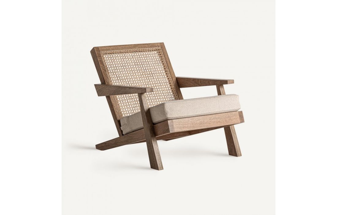 A poltrona destaca-se pelo seu design art déco e combinação de materiais. A madeira de mango une-se ao MDF bege numa silhueta envolvente que proporciona aconchego e estiloDestinatário :