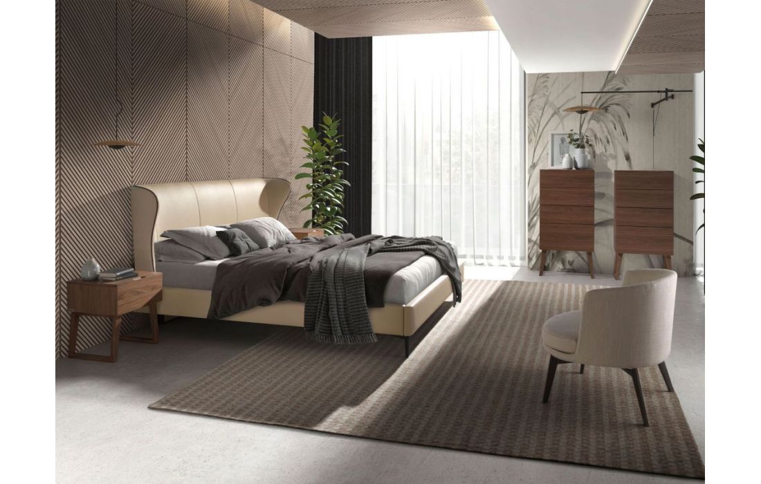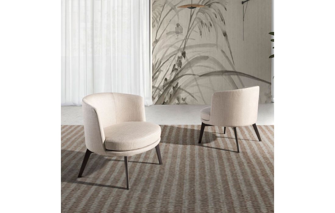 Cadeirão de design moderno com assento e encosto estofados em tecido com as suas pernas em aço inoxidávelDestinatário :