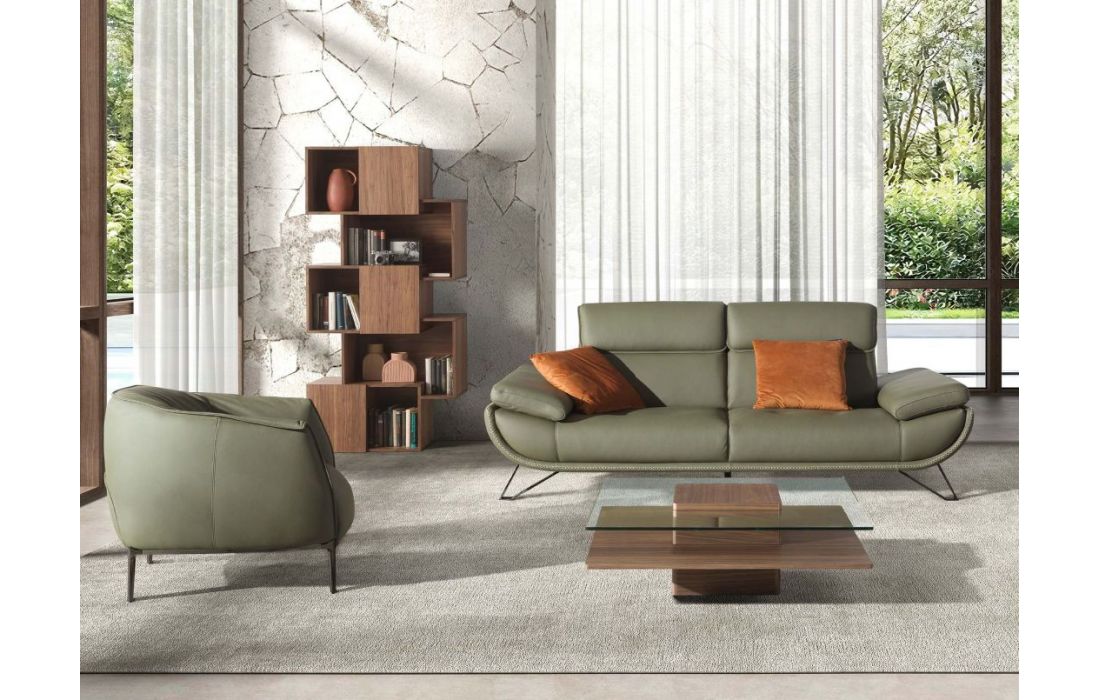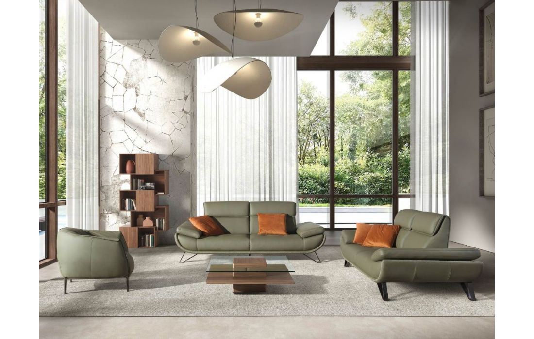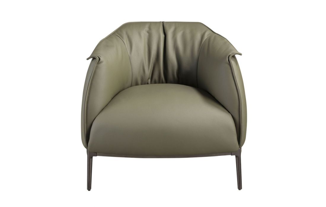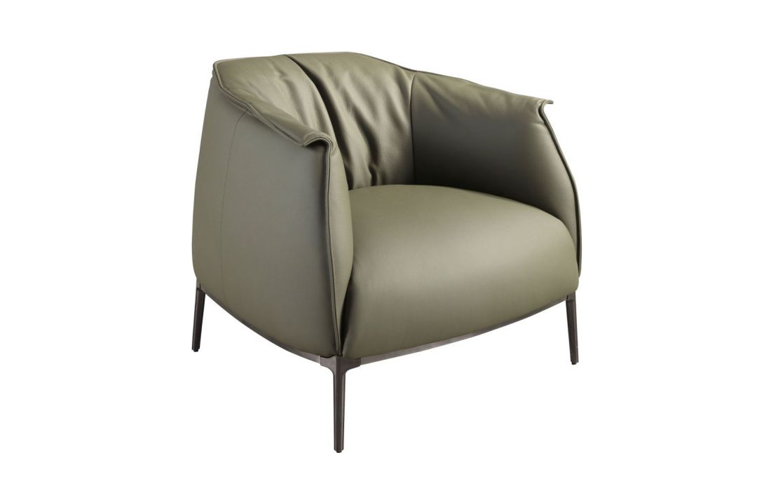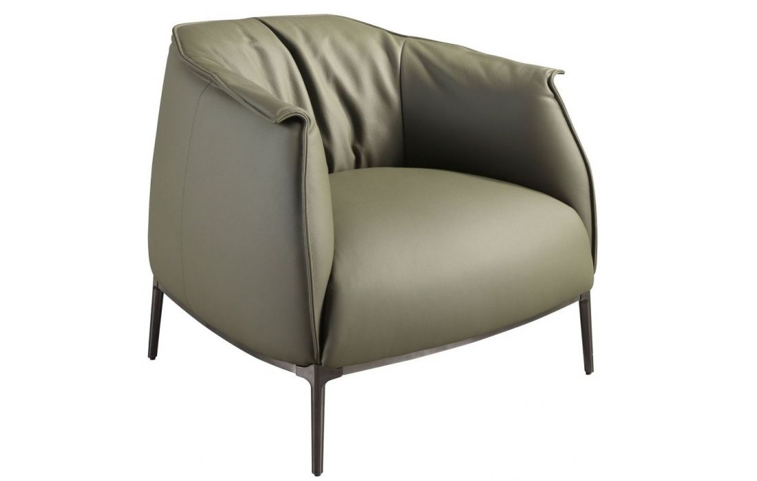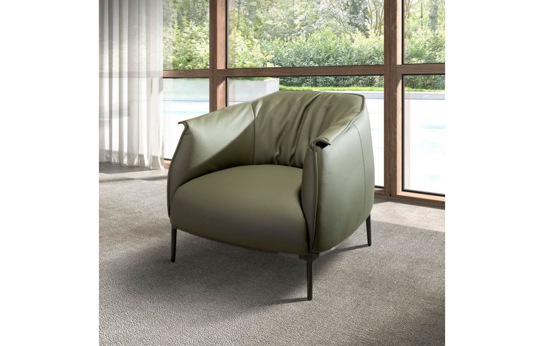 Poltrona moderna com braços, assento e encosto estofados em pele de bovino e as suas pernas em aço inoxidável cromado, esta poltrona é a combinação perfeita entre design e confortoDestinatário :