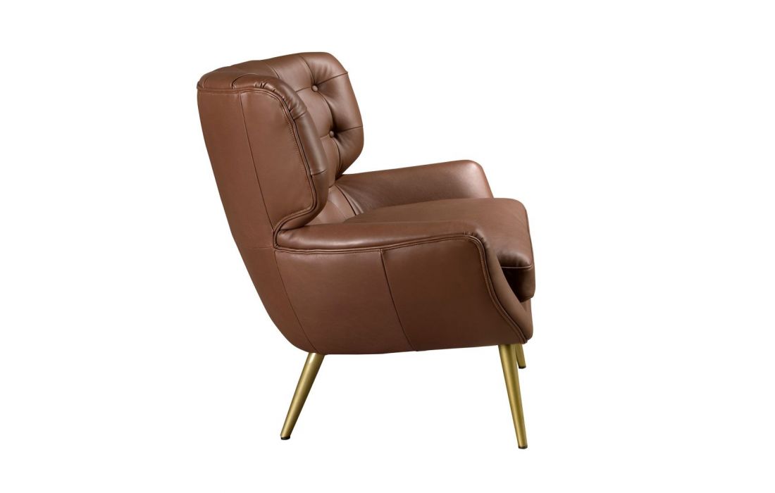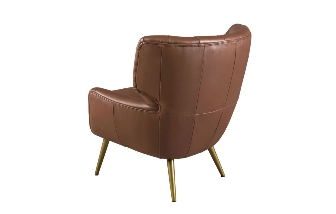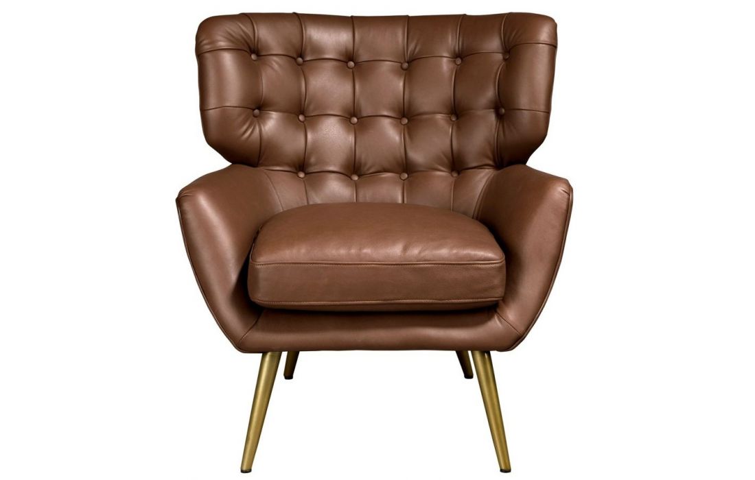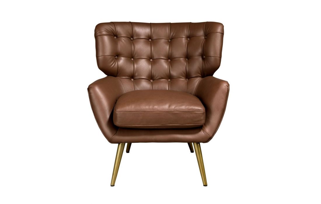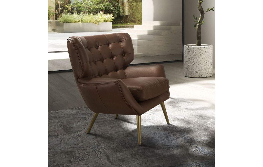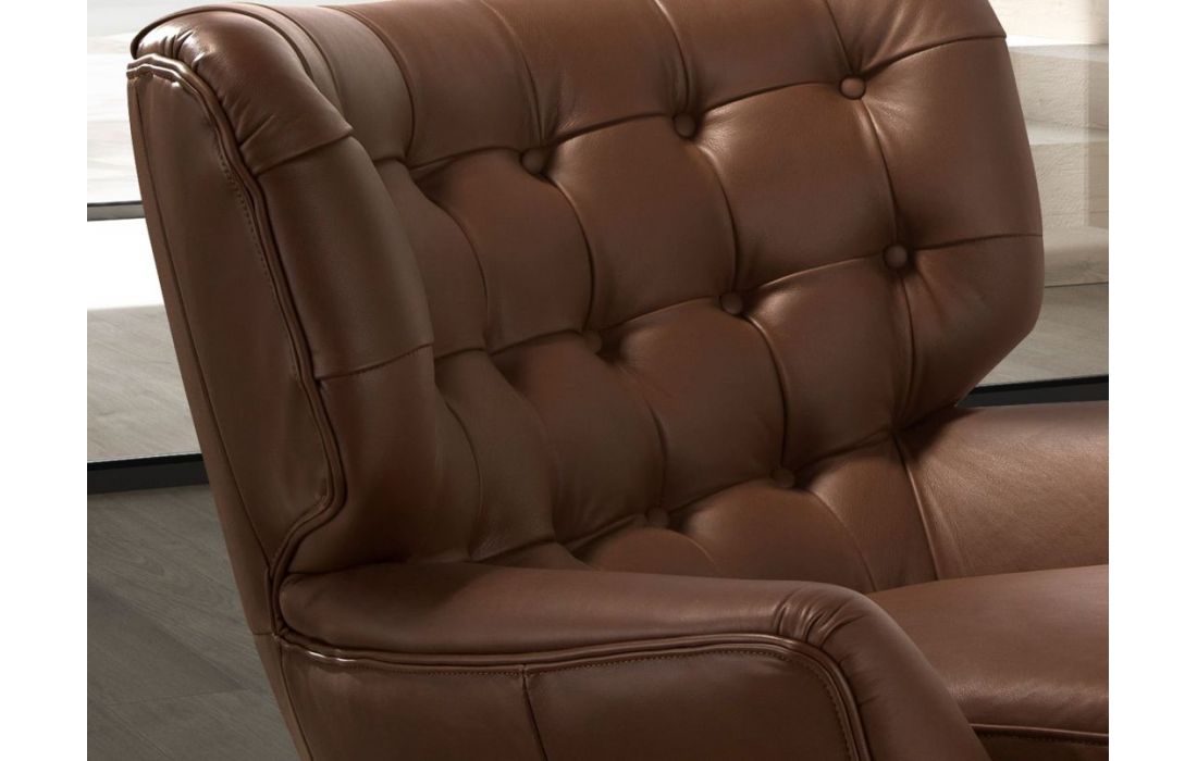 Poltrona moderna com braços, assento e encosto estofados em pele de vaca e as suas pernas em aço inoxidávelDestinatário :
