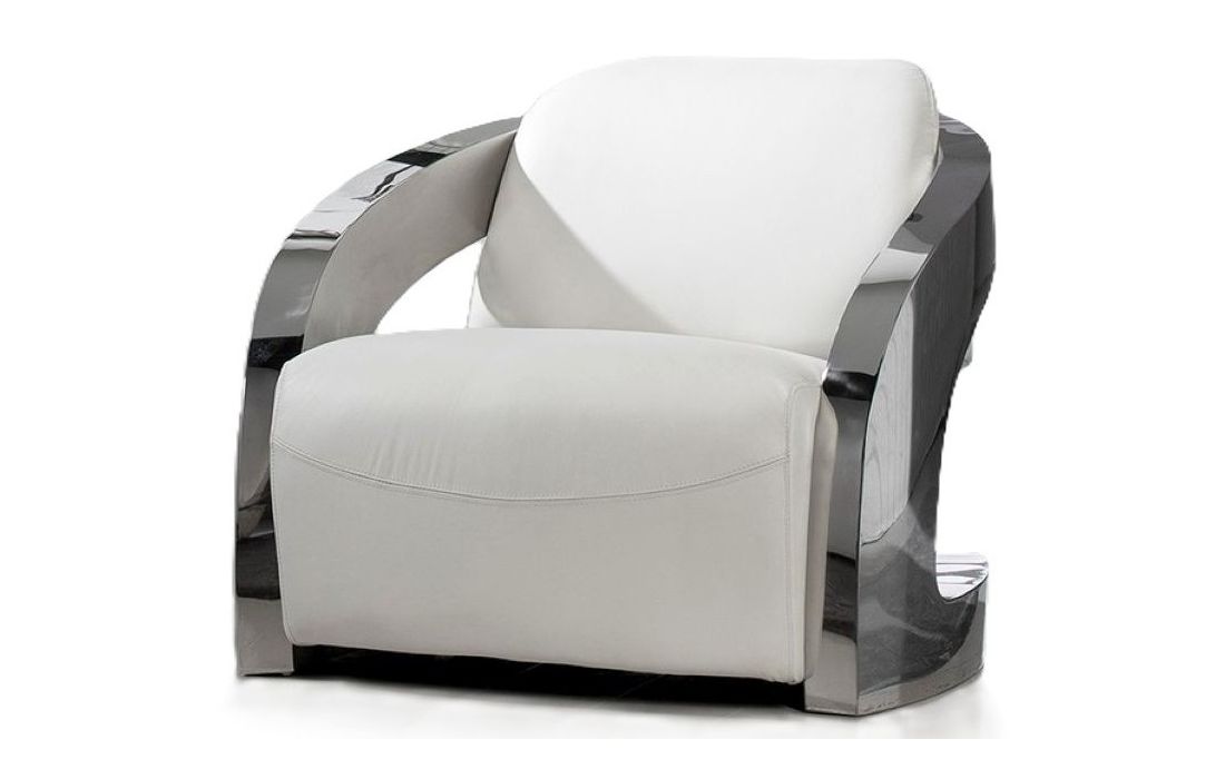 Poltrona com encosto e assento estofado em pele e estrutura em aço inoxidávelDestinatário :